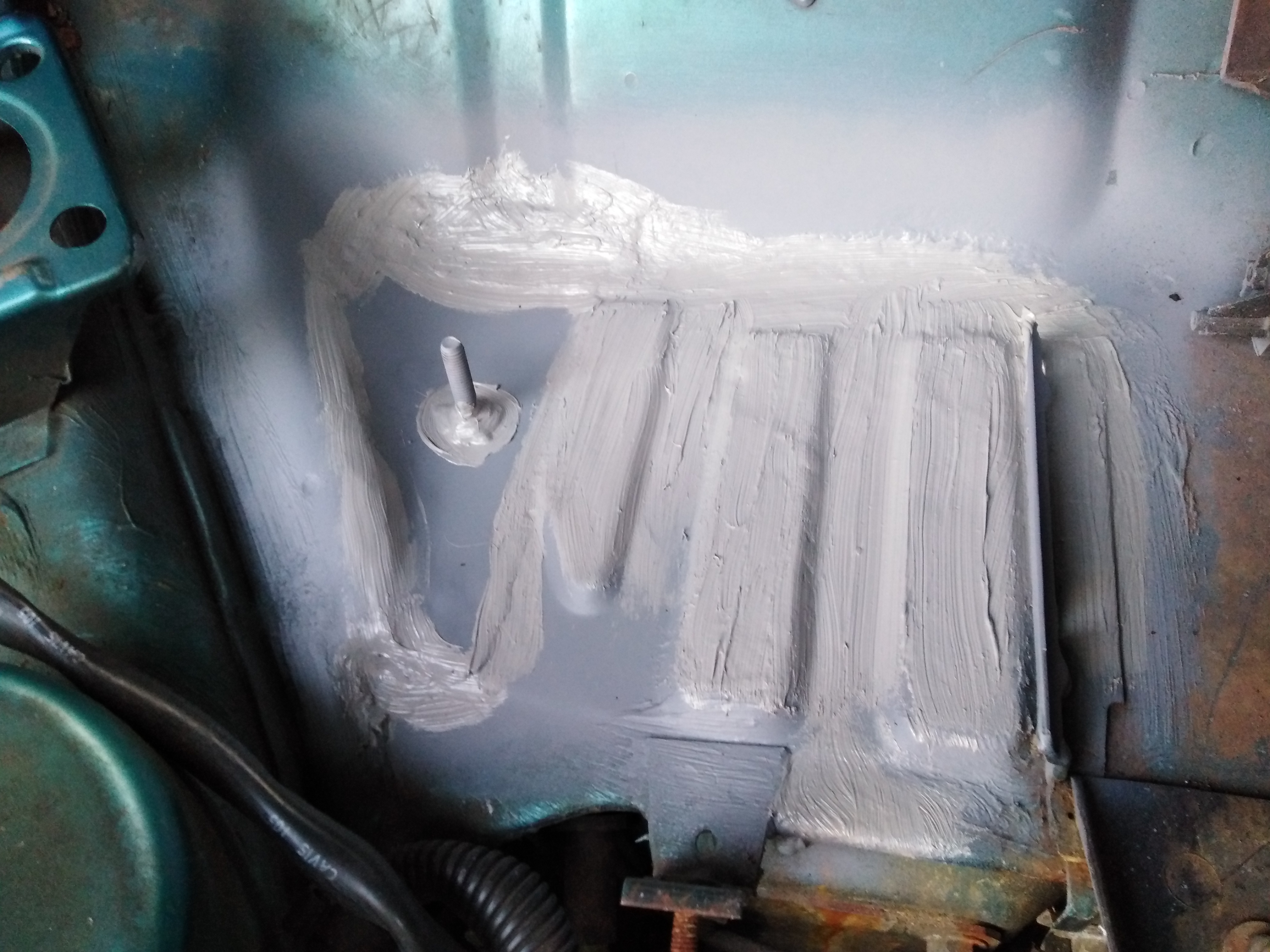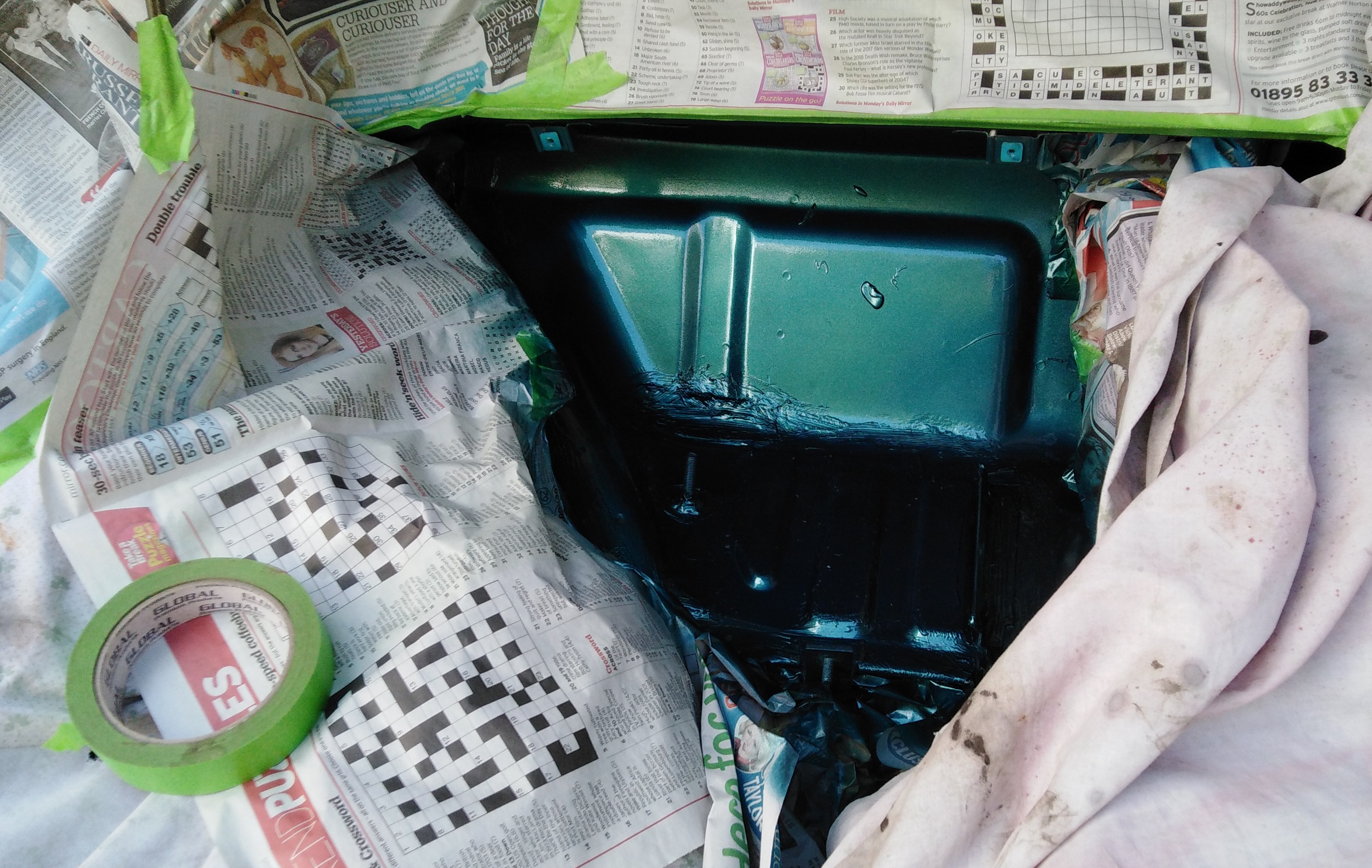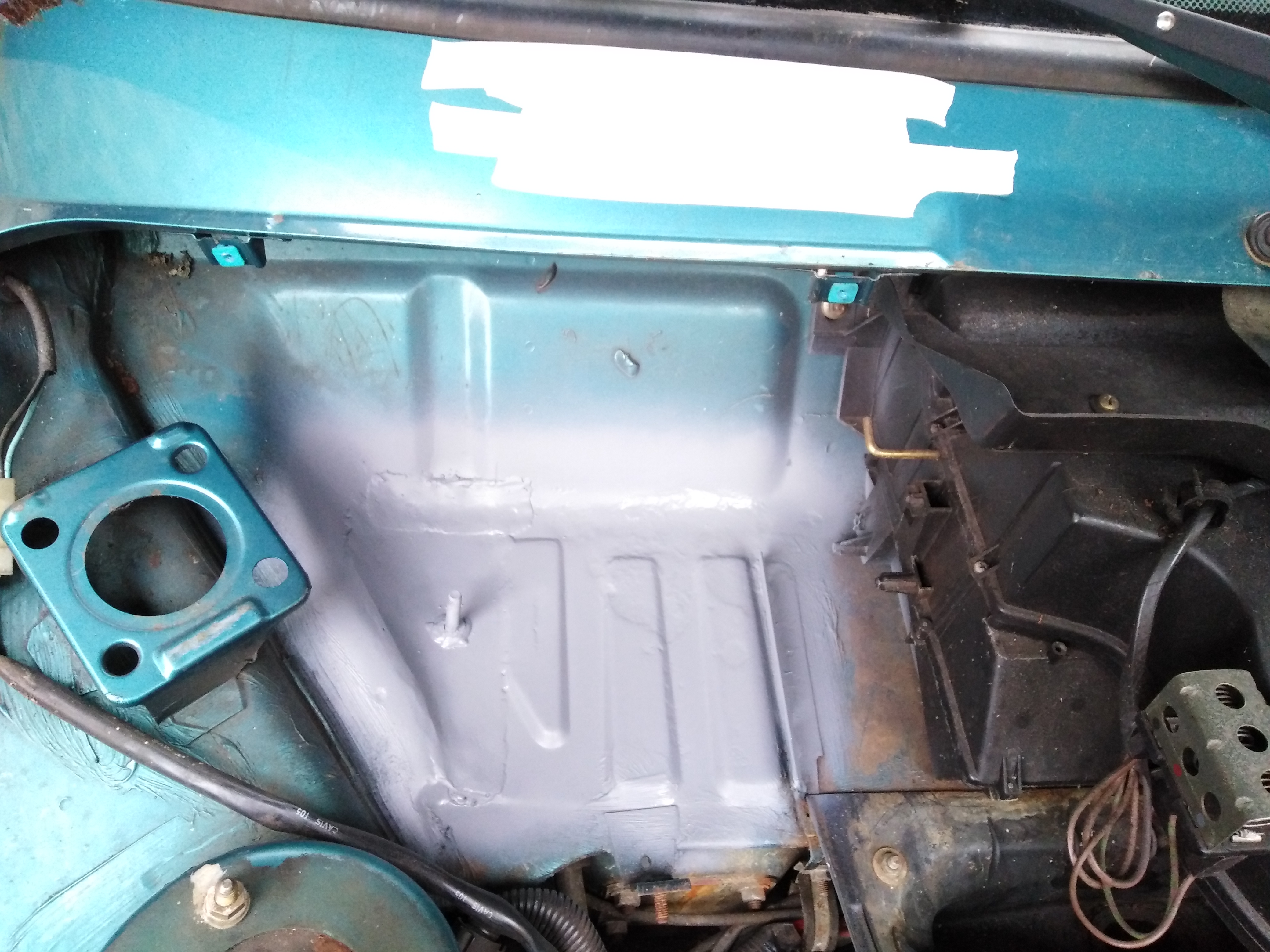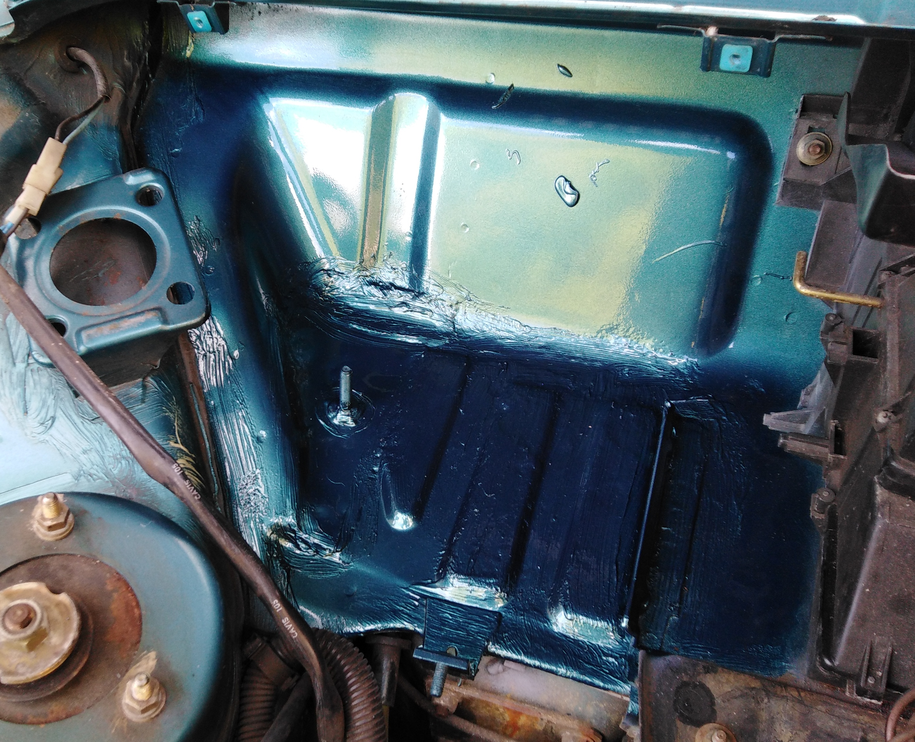 Etch primed a few decent layers then seam sealed it with an extra layer on the raised sections where the plastic battery tray will sit.