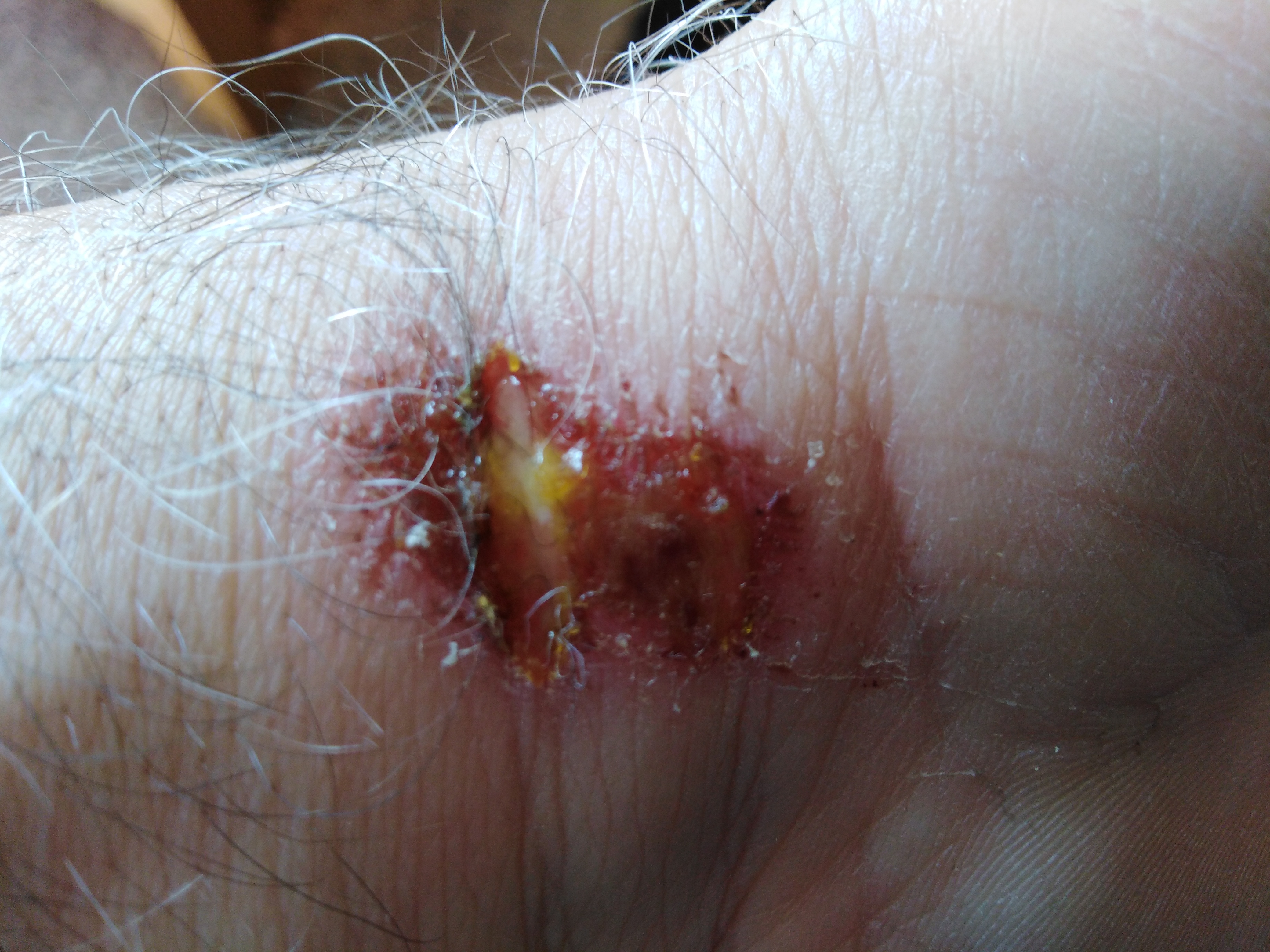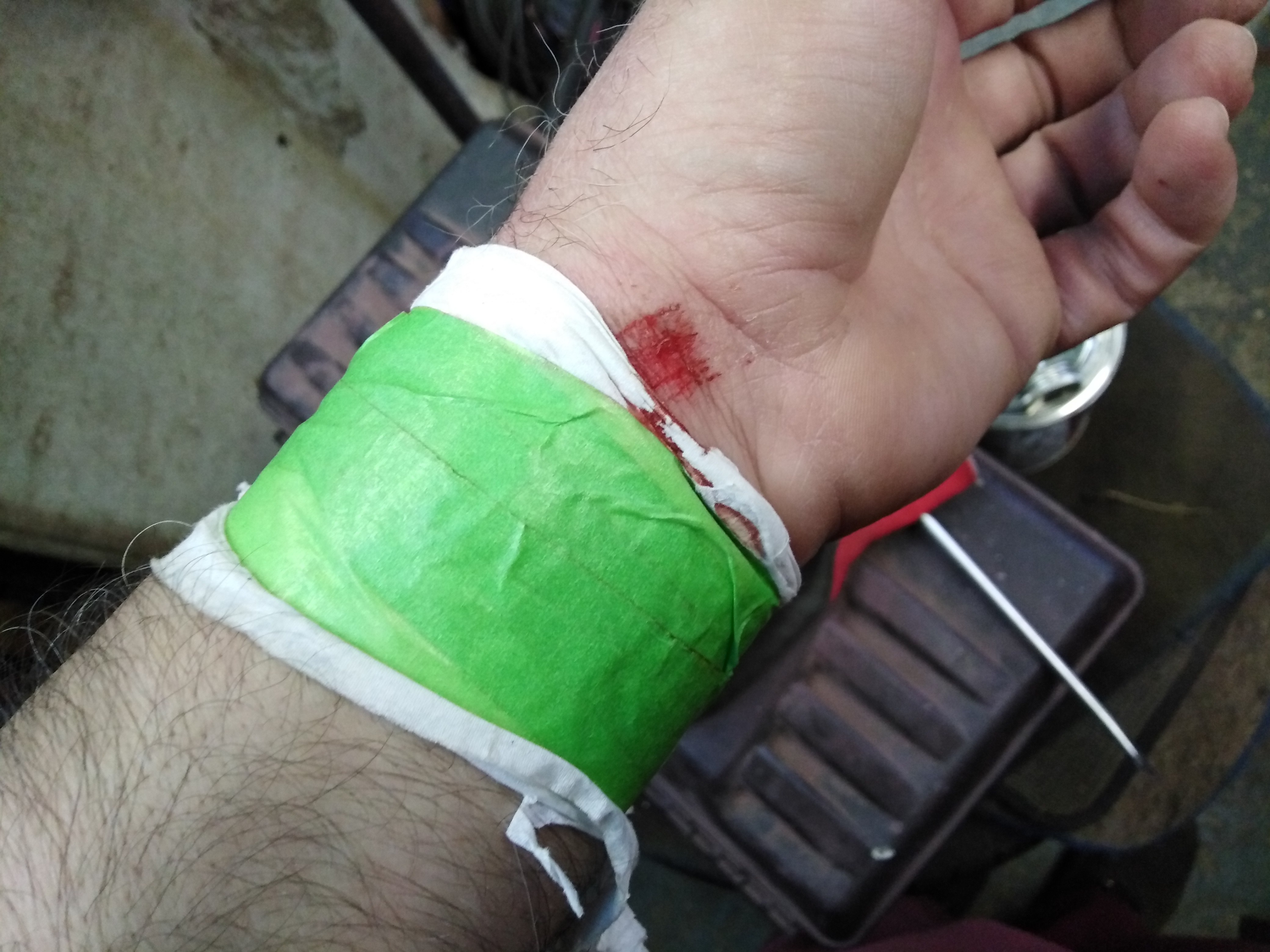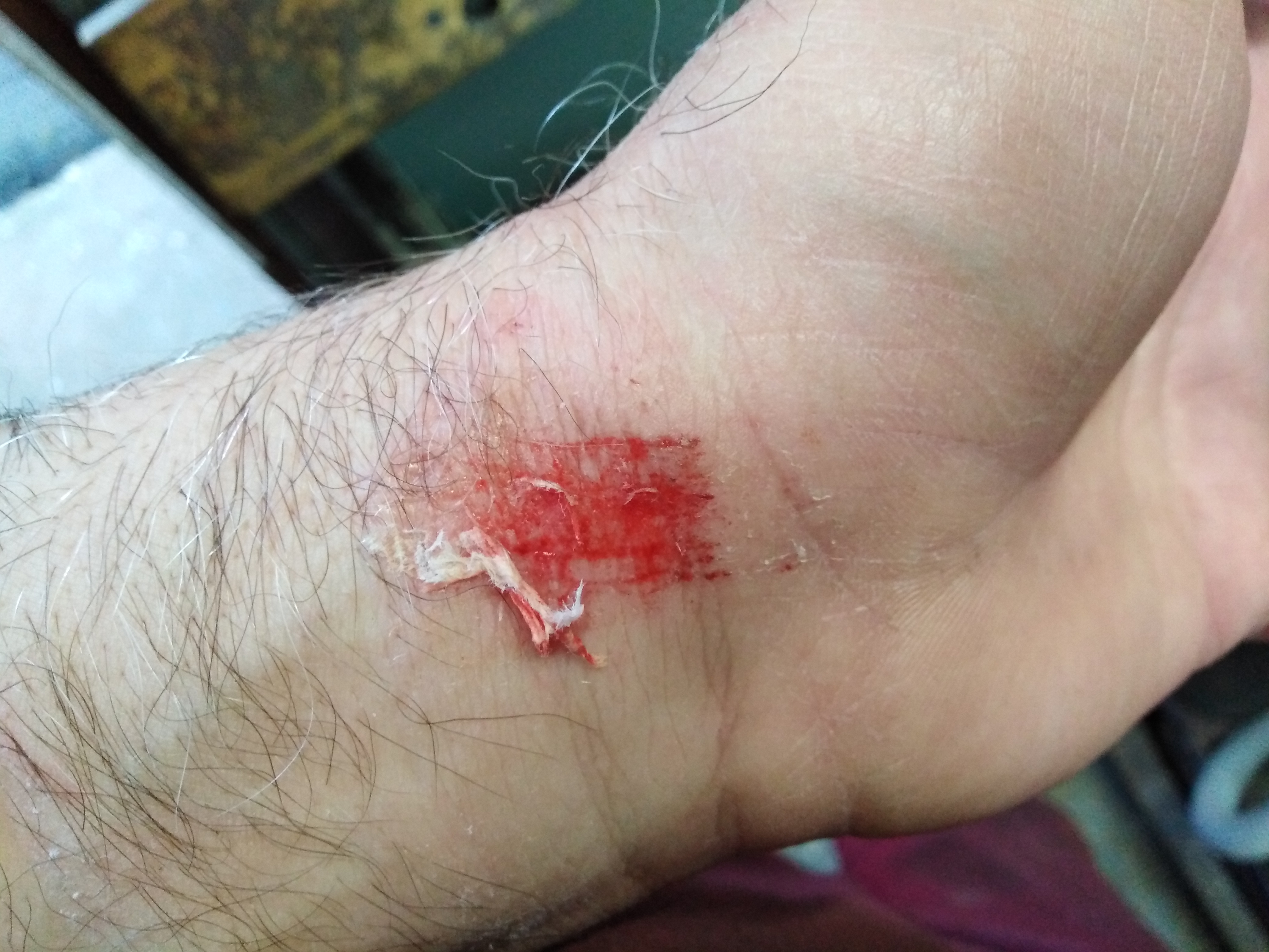 Trouble is being on the wrist the scab keeps splitting every time you move your hand, bit messy now but only bit of skin. Nothing too deep.