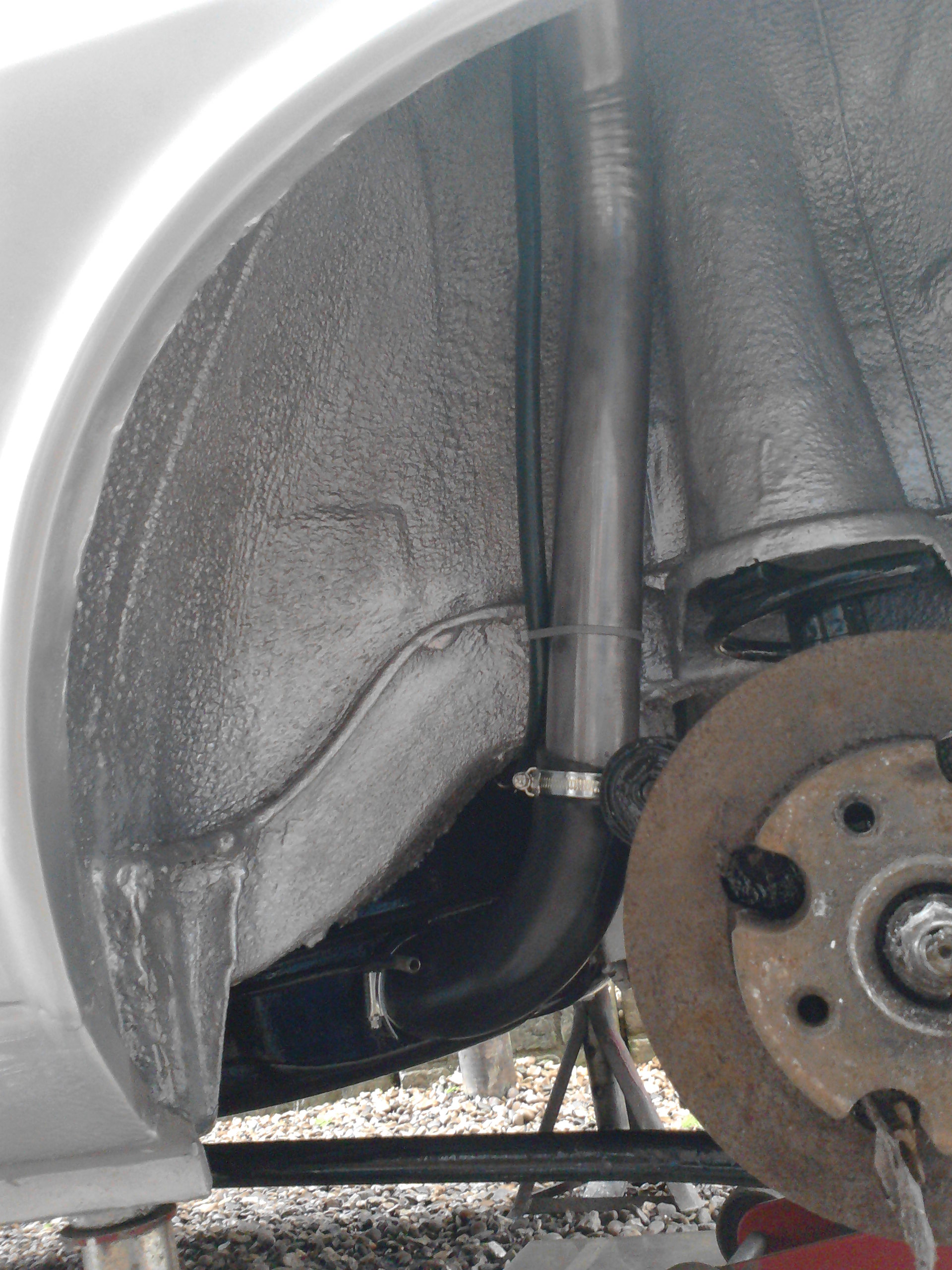 correct shocks and rubber blocks above the rear springs fitted, fuel filler kneck on, fuel flap on which saves me dodging around it in the shed, steering rack changed, doors and sills waxoyled.