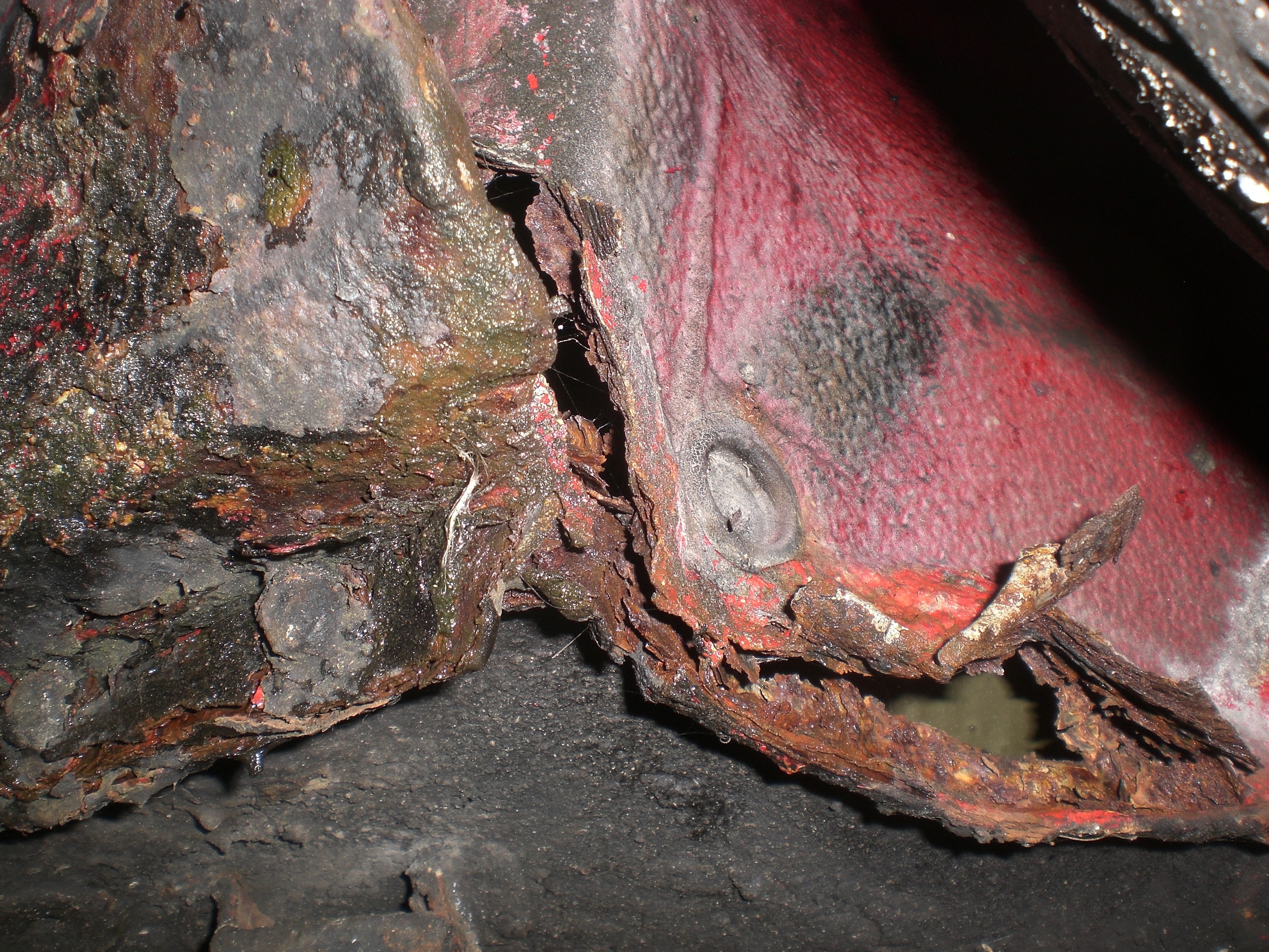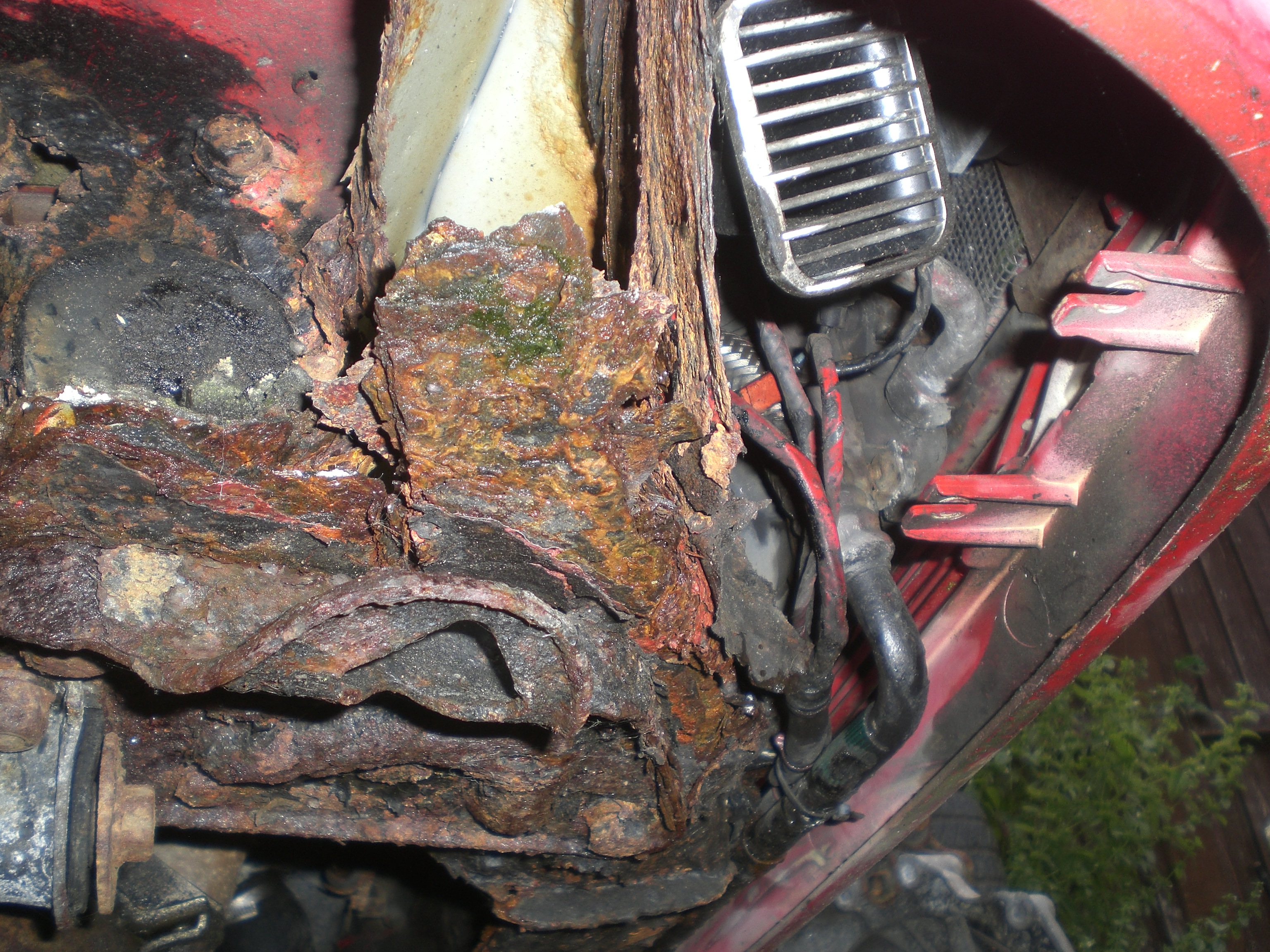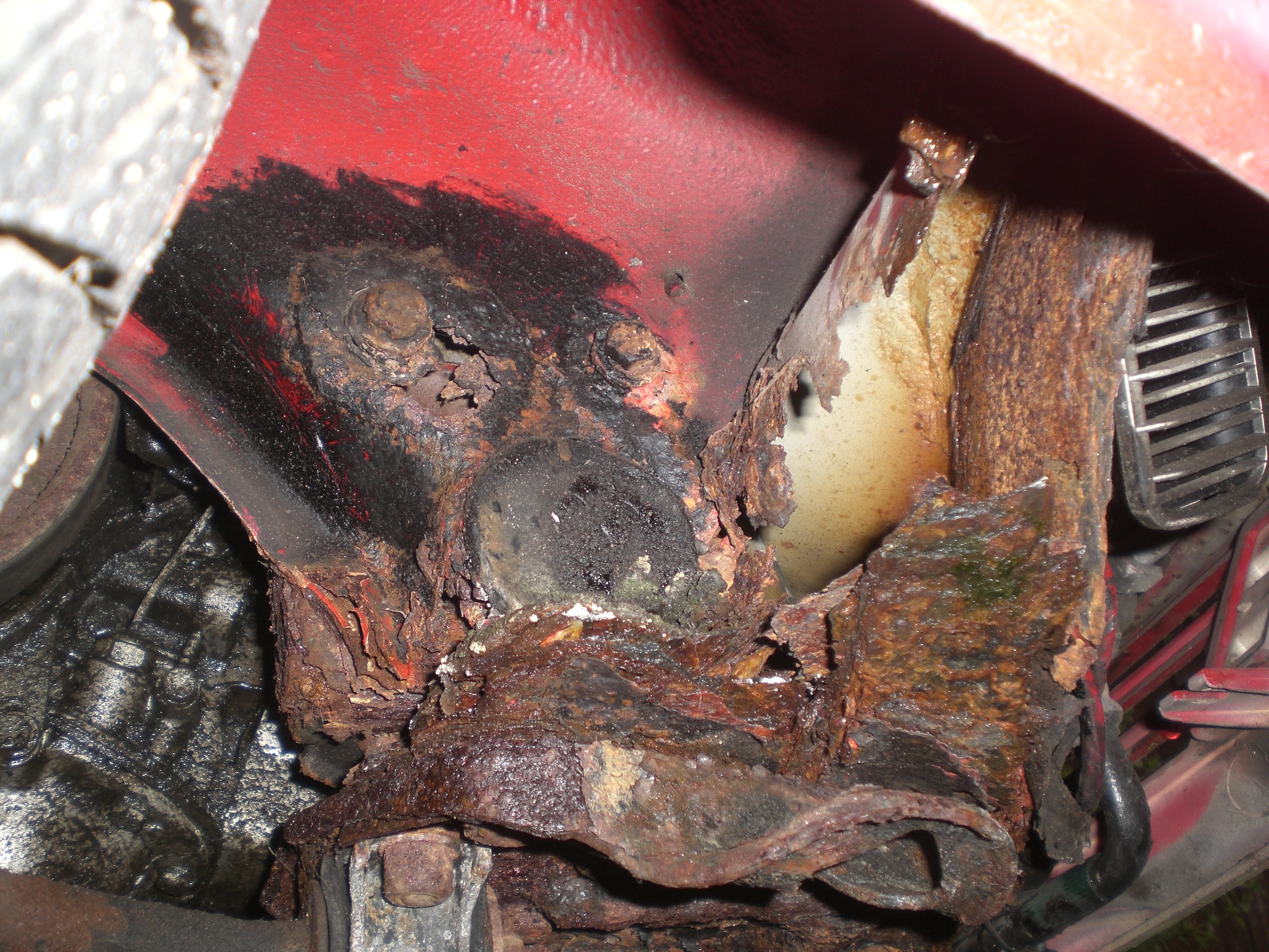 strut top area and sill to inner arch, guess there'll be loads of other rot to fix once the job starts.