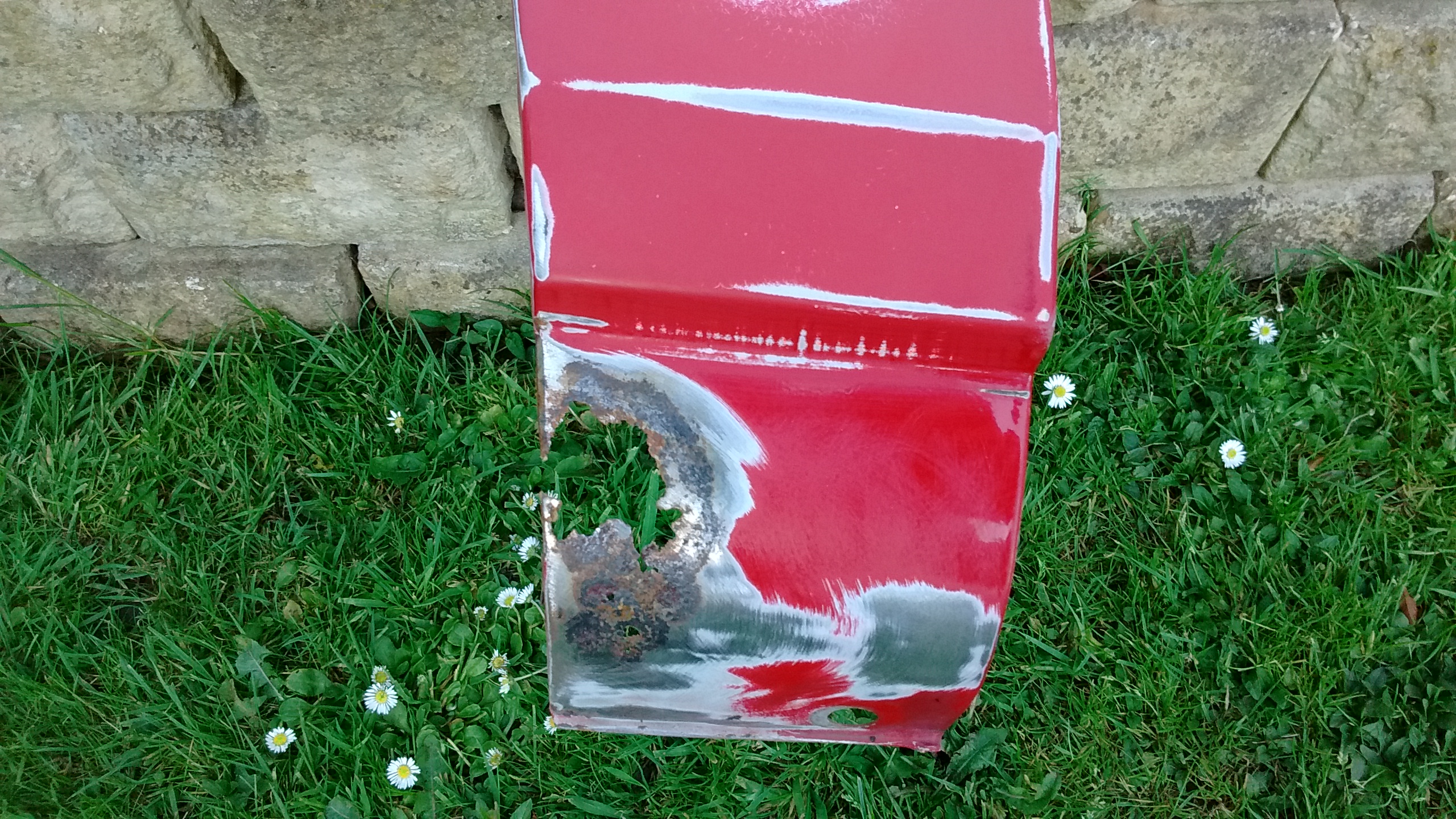the passenger front door we knew would need a hole repairing along the front edge of the bottom outer skin