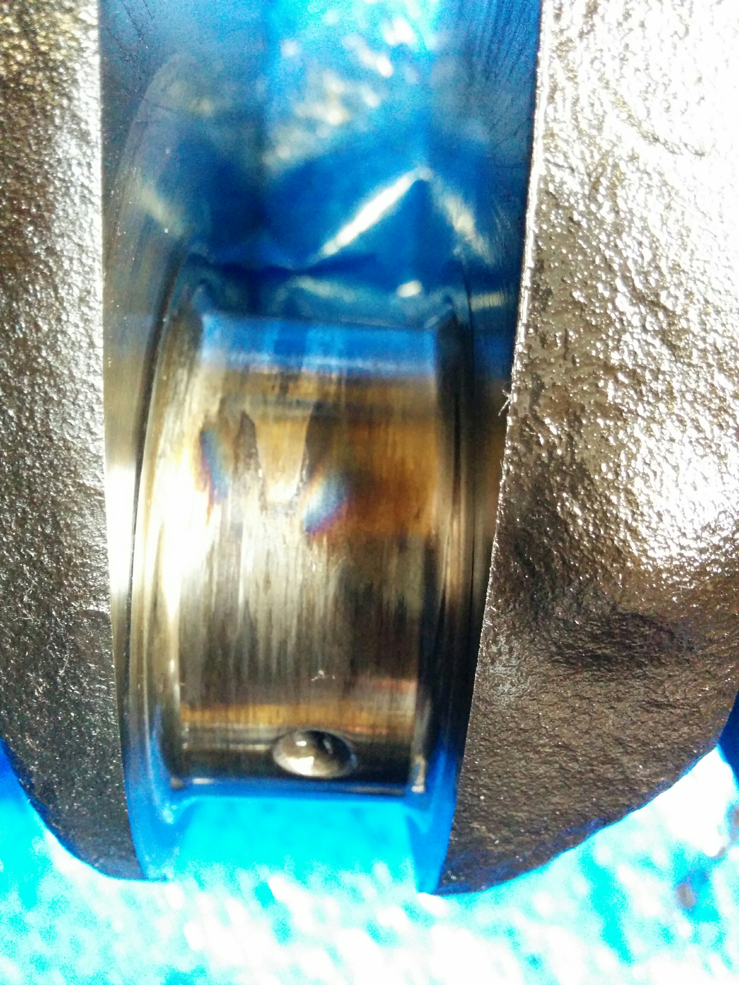 Engine is dismantled. Pretty nasty damage on bearing number 2. There wasn't much left of the bearing.