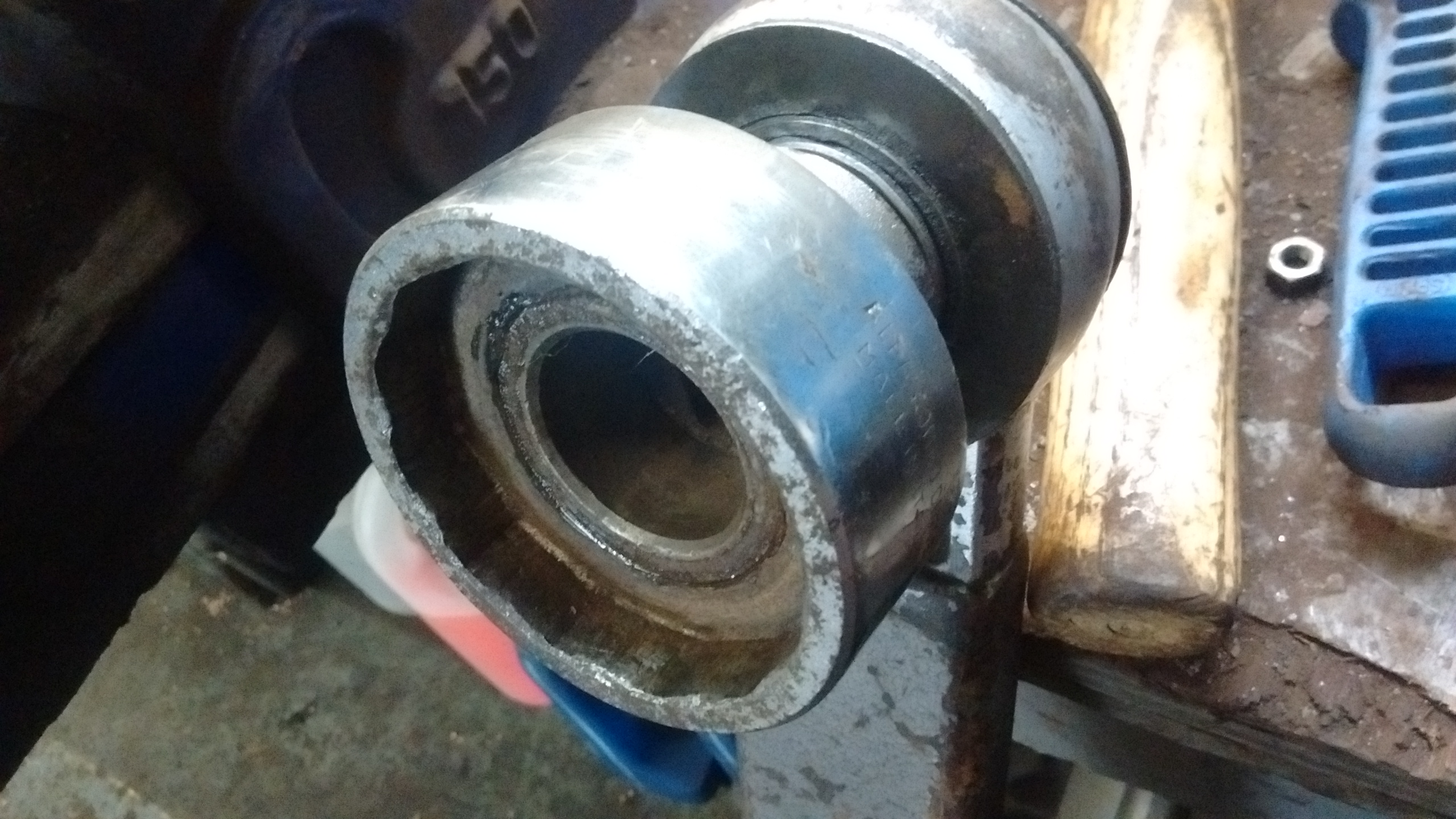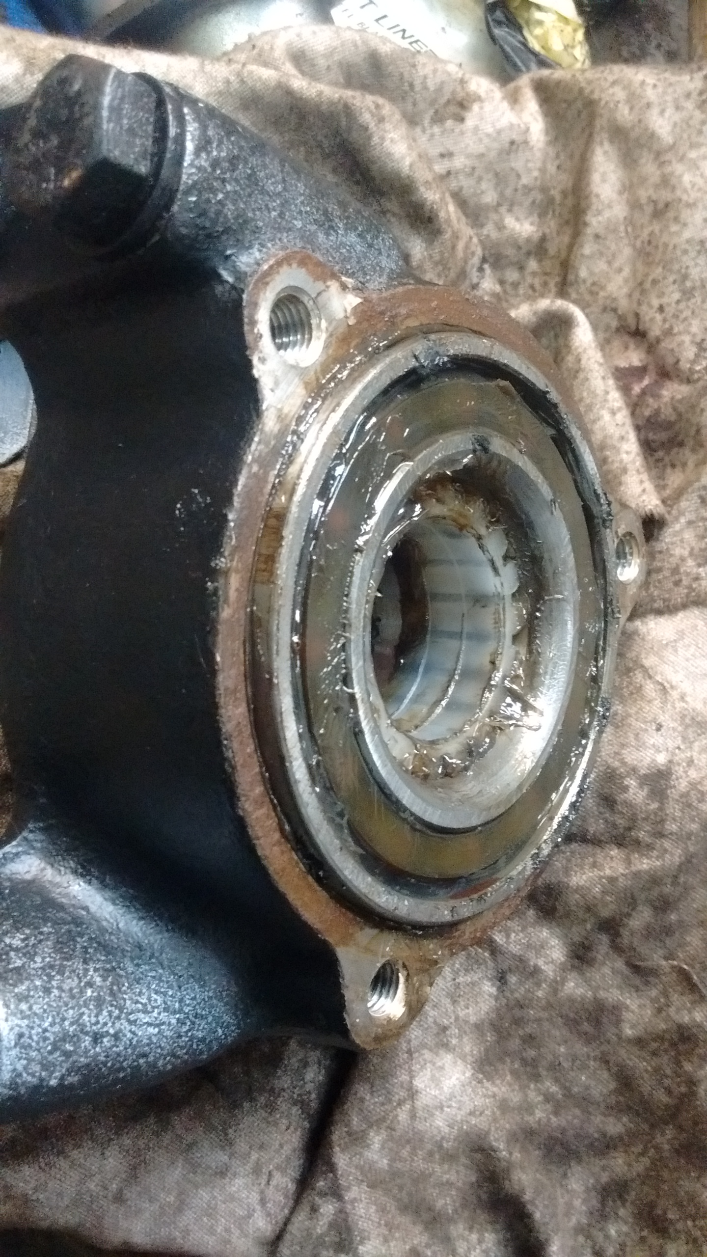 I will finish on the most important note though, just be careful and logical about which part you press against at each stage. At no point should force be put through the bearing itself when pressing. In that I mean that if pressing the bearing assembly into a hub then the force needs to be going through the outer wall. If you are pressing the drive flange back into the bearing then the inner race needs to get the force. Think of it in that whichever piece is getting pressed then the section of bearing nearest to what you're fitting is where the force needs to be exerted.