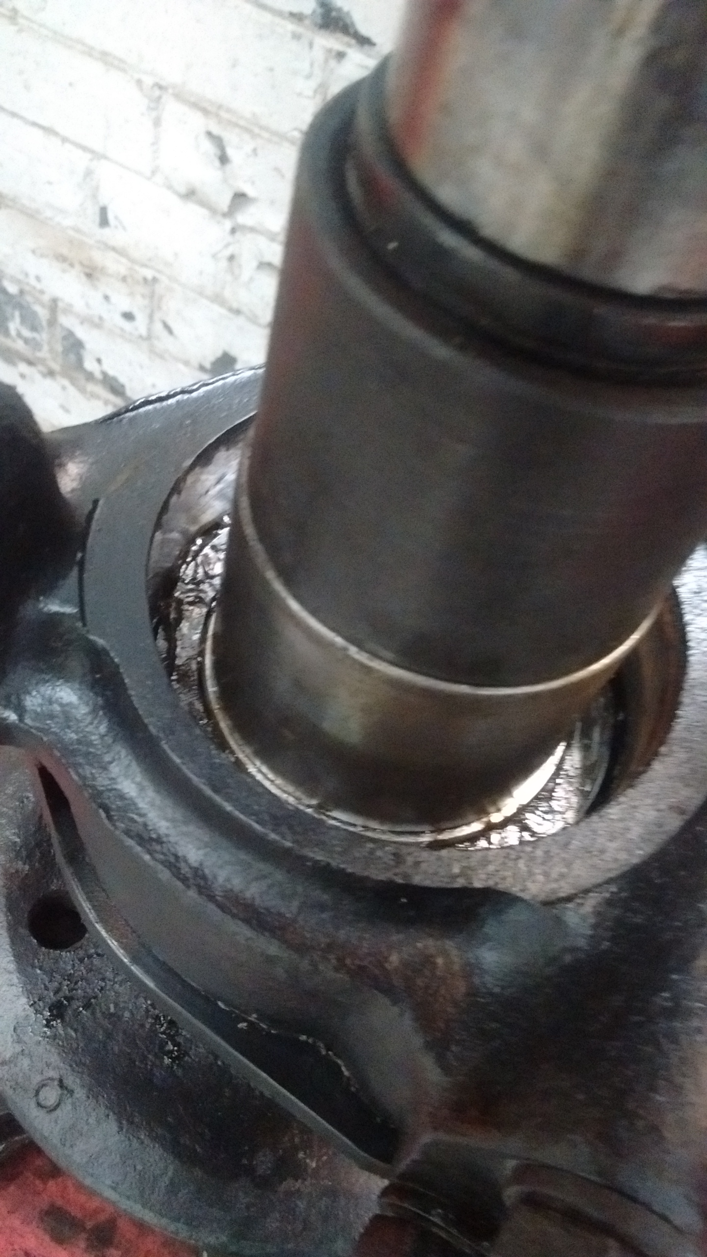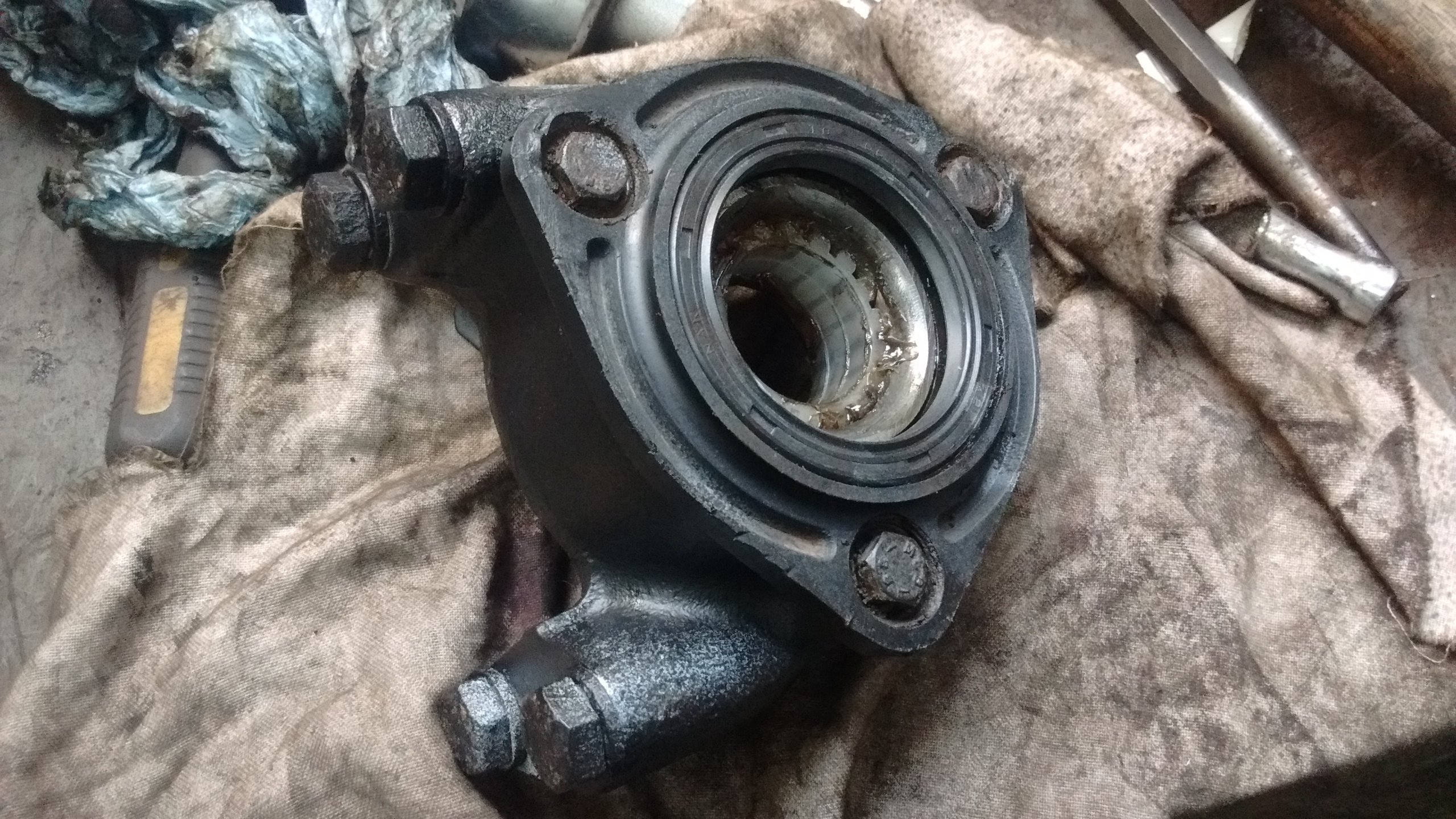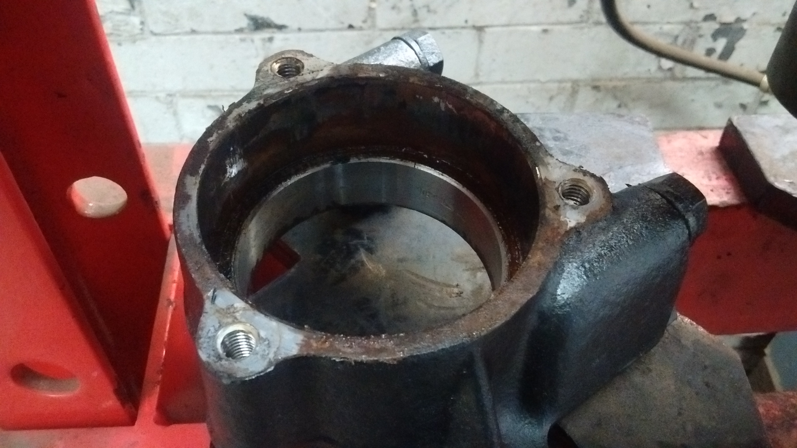 Seal carrier refitted with the new grease seal. Pays to smear a little grease on the seal lip before assembly to help things go smoothly.