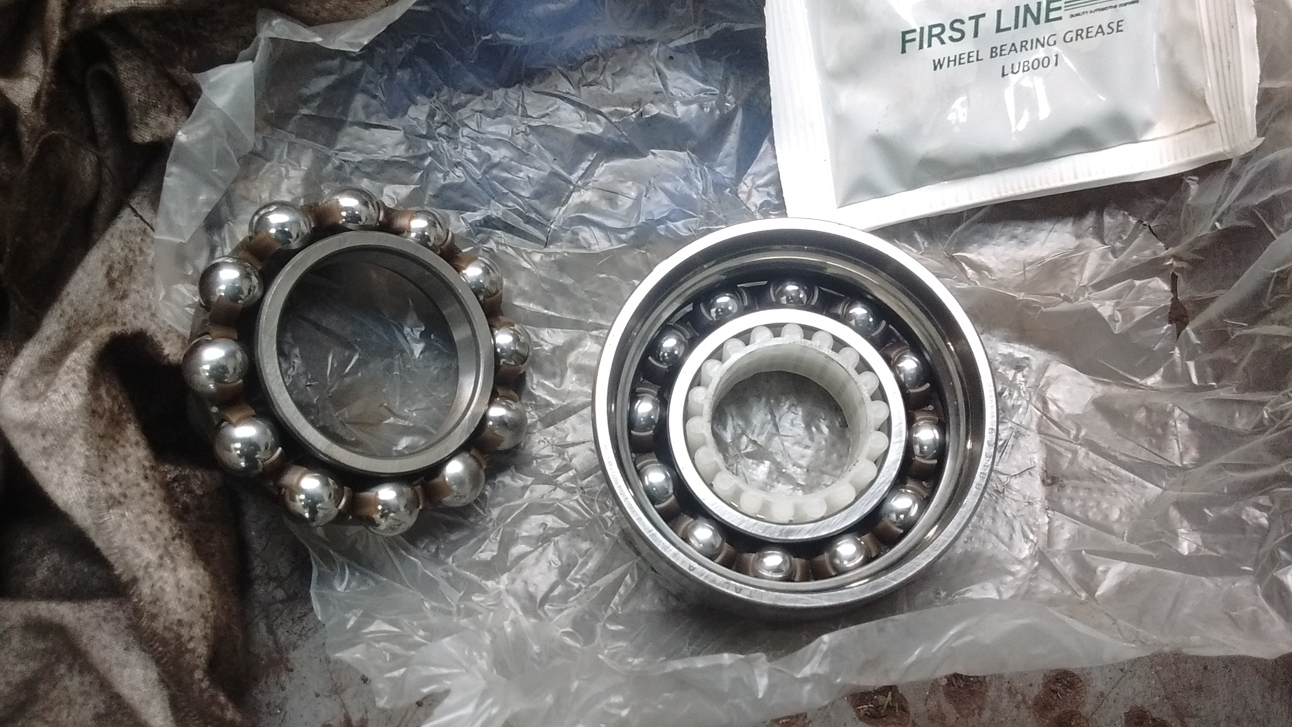 It took me quite a while to find appropiate bearings. From the factory FAG was pressed in, the service sets were made by SKF and they're not that easy to find. These days the replacement bearings are made by Bendix and some other brands. Since I insisted on having "decent" bearings it took me some time to find 2 SKF sets, but in the rnd succceeded.