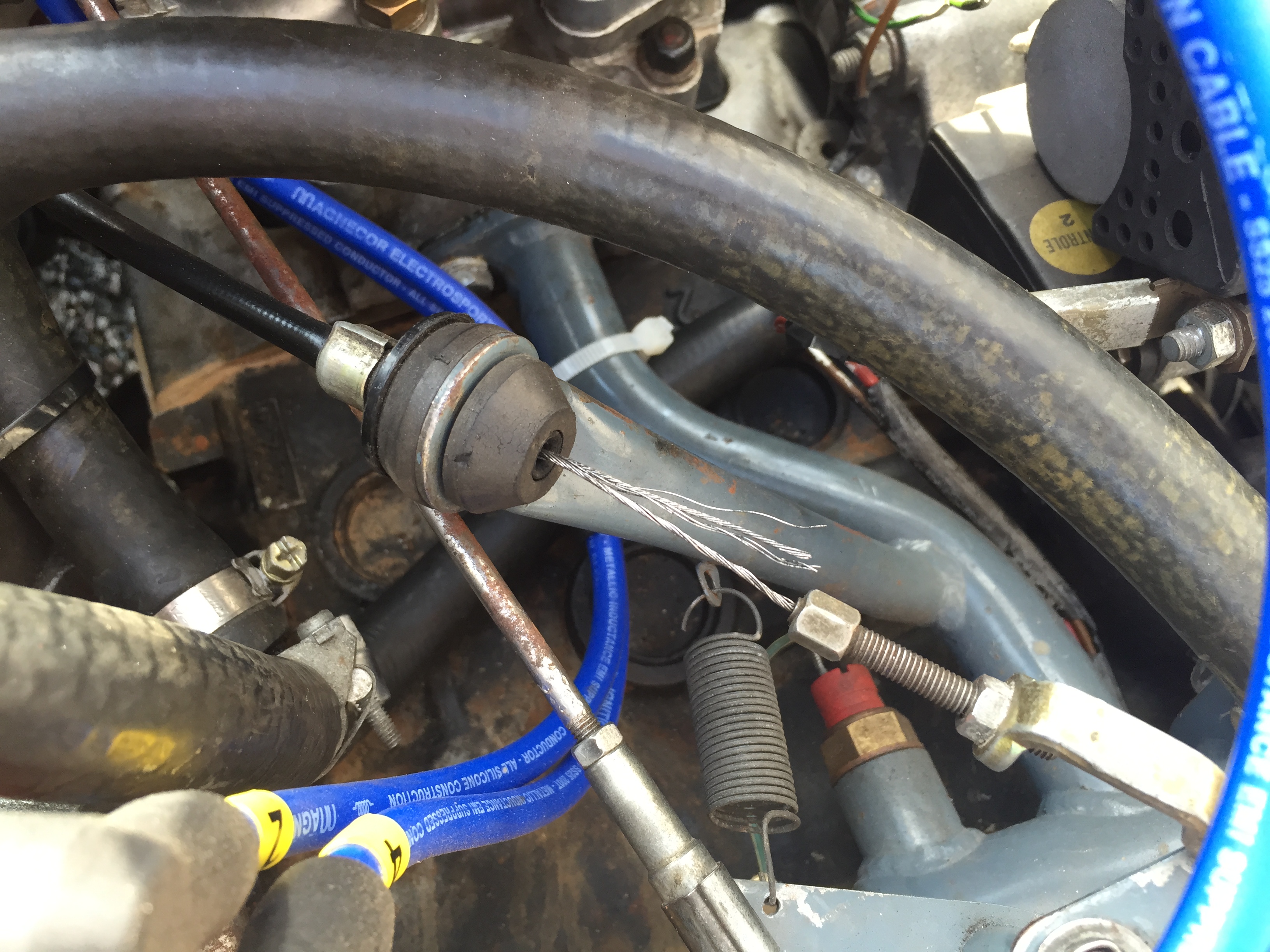 In practice today, the throttle started playing up and 50% of the cable is frayed at the end.