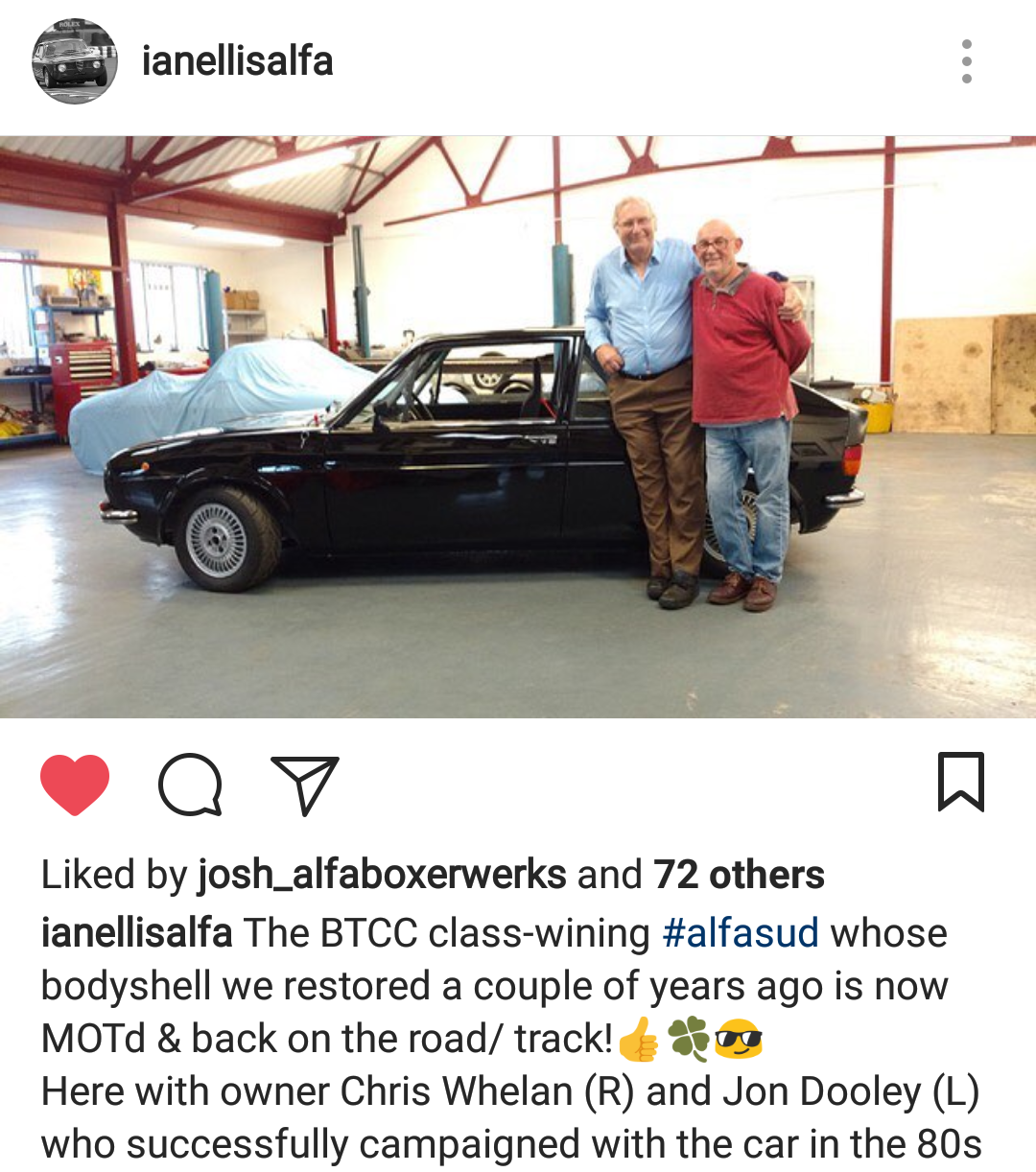 A brave restoration, it was a basket case, but with its race history worth it. I think Chris Whelan also owns an ex Italian touring car 75 turbo also so very envious.