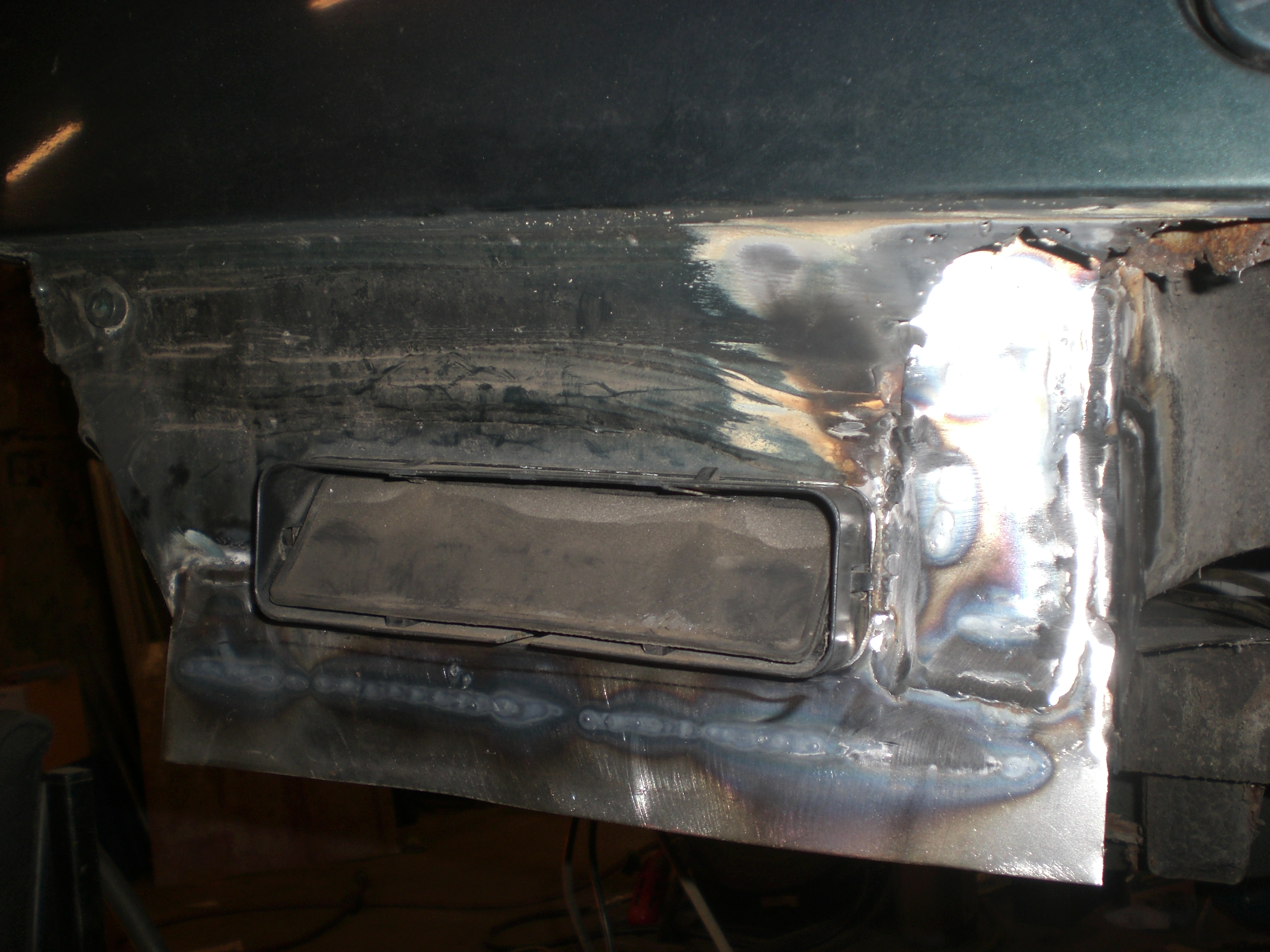 section at the front near the seat belt mount needs chopping out then the outer arch will get boxed in along with the back of the filler neck hole. last job to make up a bumper mount.