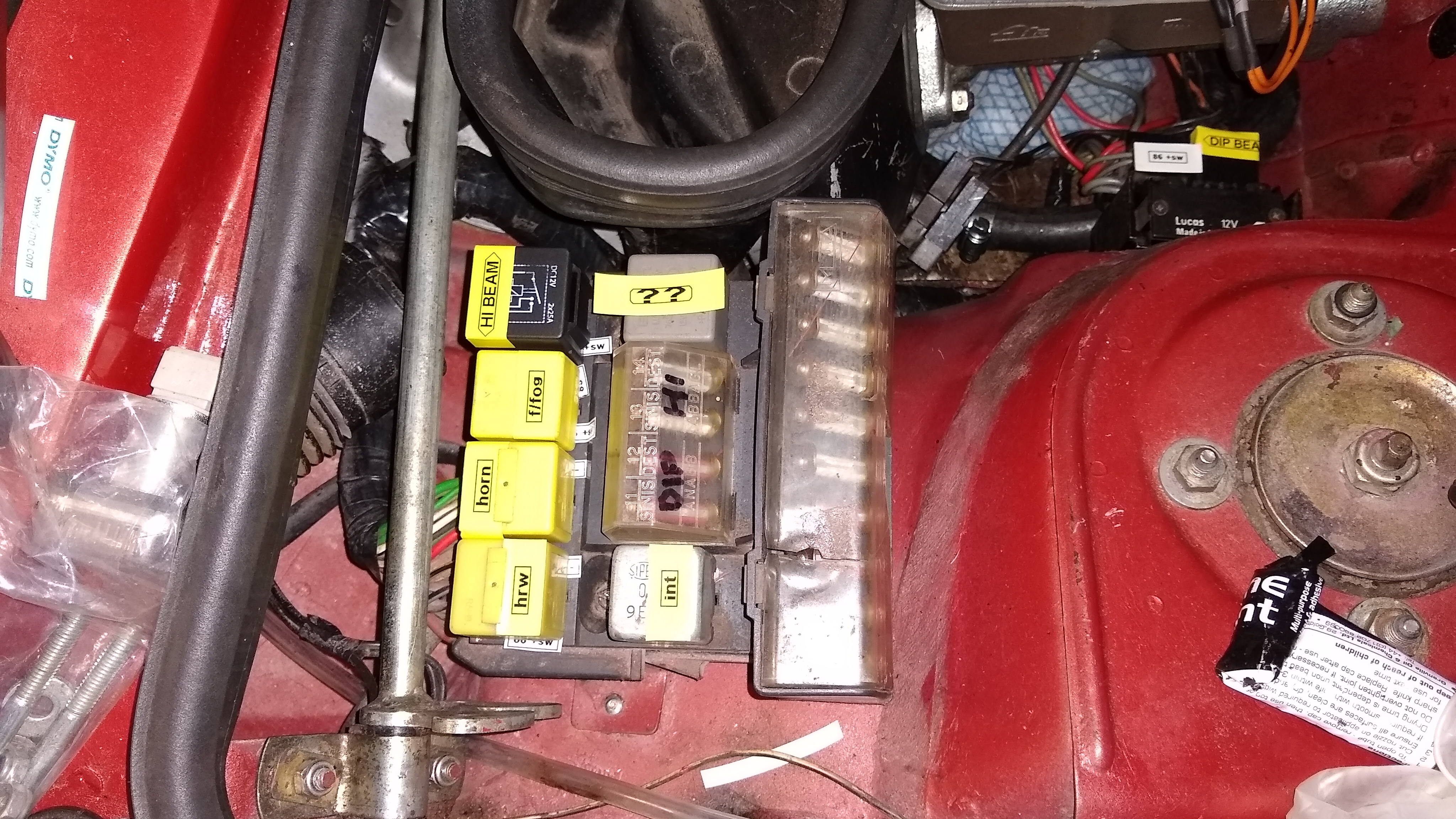 I have taken a picture and I have worked out what 3 do. I also reckon the one I haven't labelled in the row of 4 is the horn relay. That just leaves the 2 either side of the small row of fuses. I just can't work out what they are for. Also the metal cased one seems to get a bit hot.....
