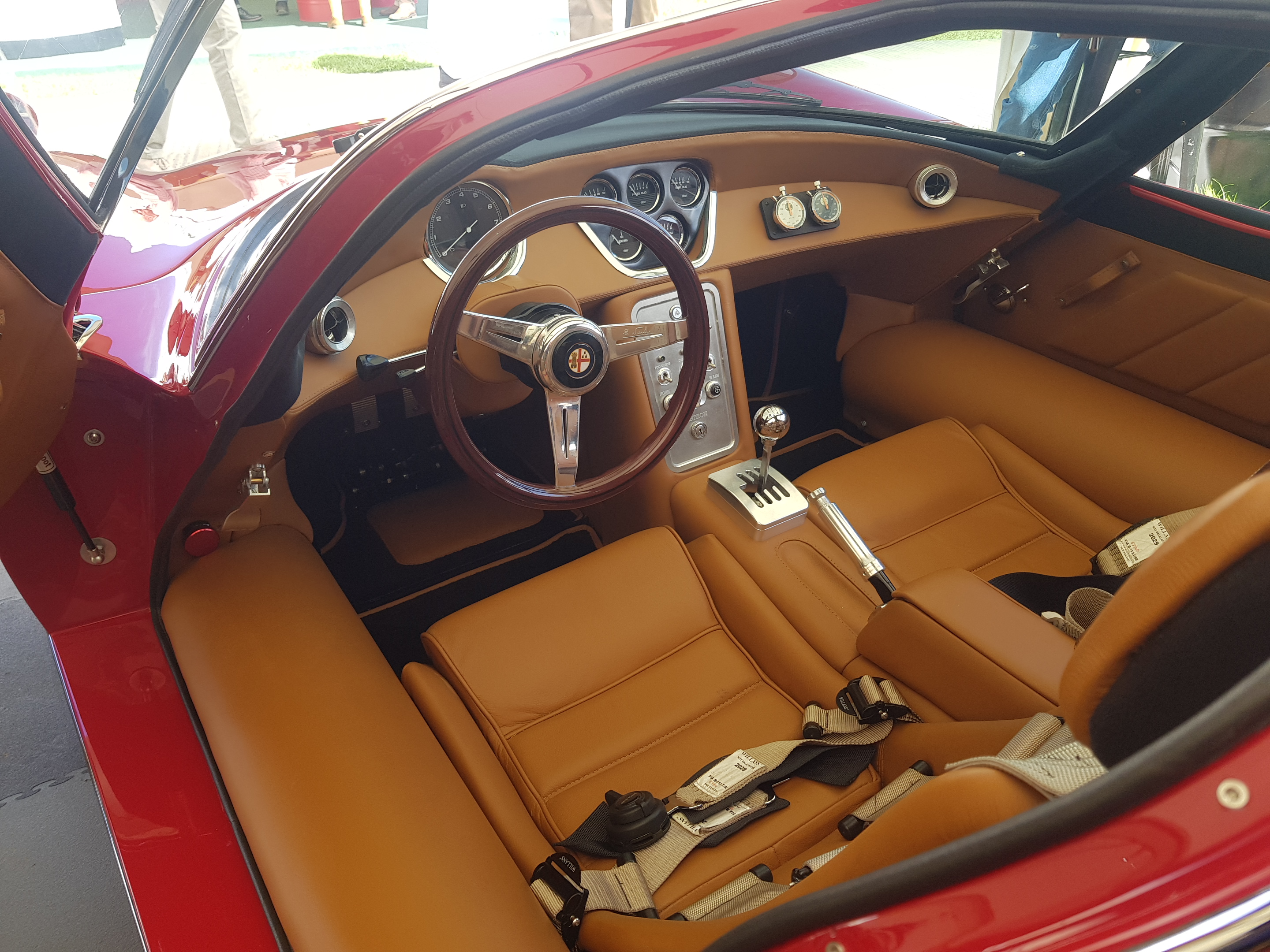 They can't use the Alfa badge so they've come up with something that looks similar from a distance. Interesting folks to talk to. They had a bare metal shell there too. All hand formed ally. I said there's a lot of compound curves.....yes, we spend a lot of time discussing curves!