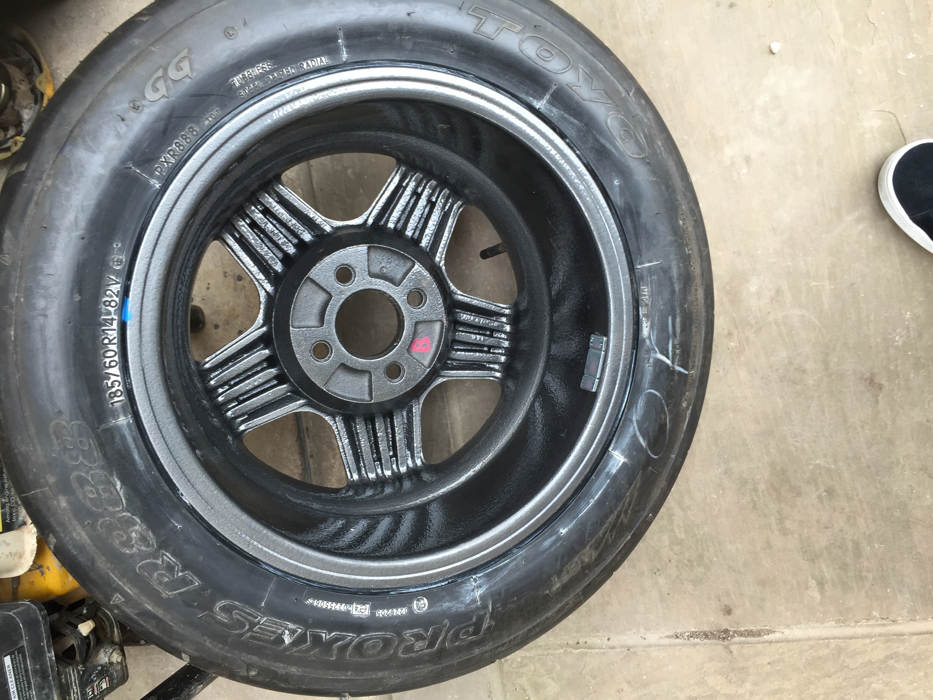 powder coating and polished rims, (Shrews handy work), fitted with a unused toyo R888 semi slick tyres.