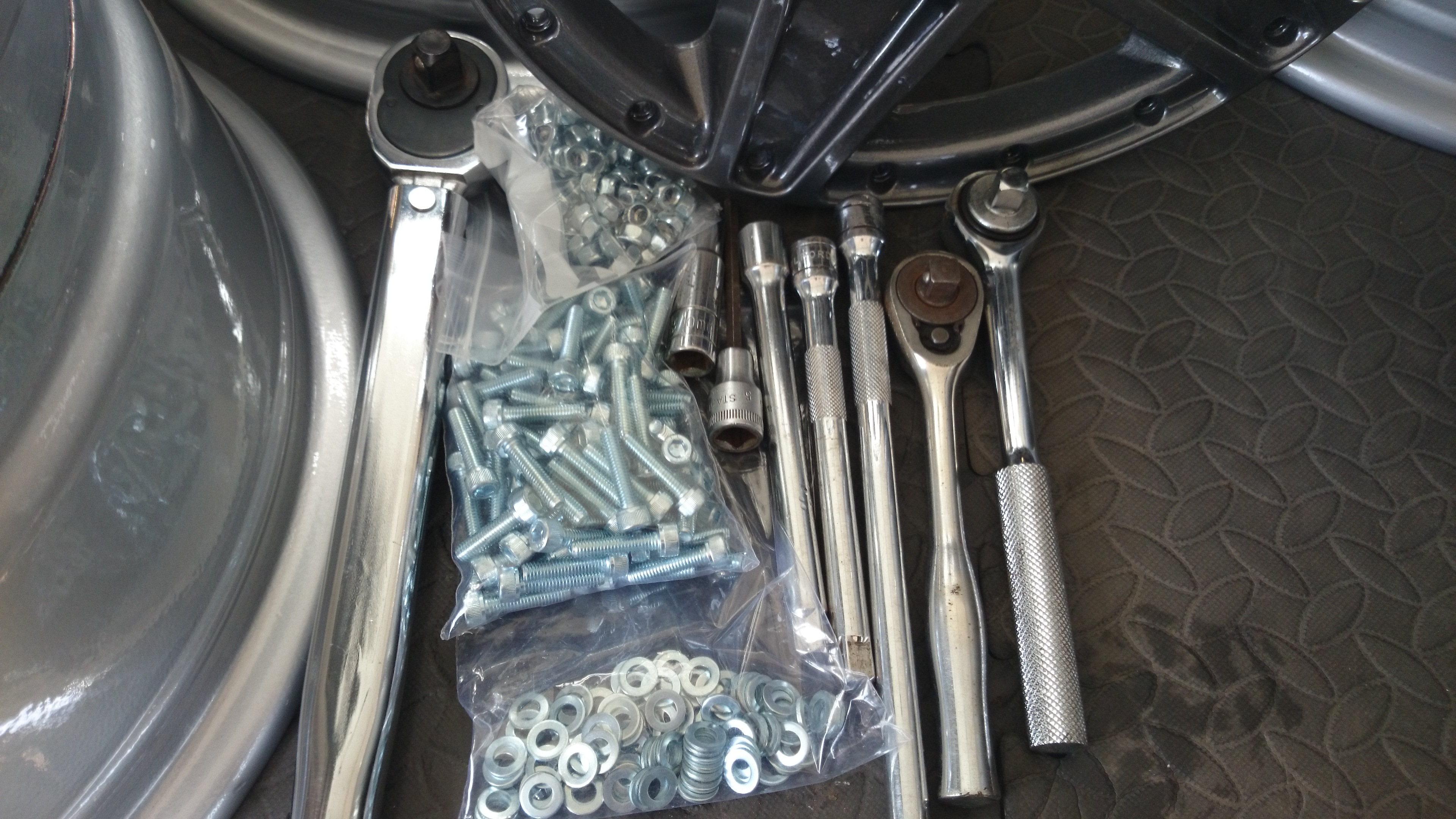 So, armed with the neccessary tools, and a brand new set of high tensile bolts, shallow nyloc nuts and lock washers for good measure, i set about it