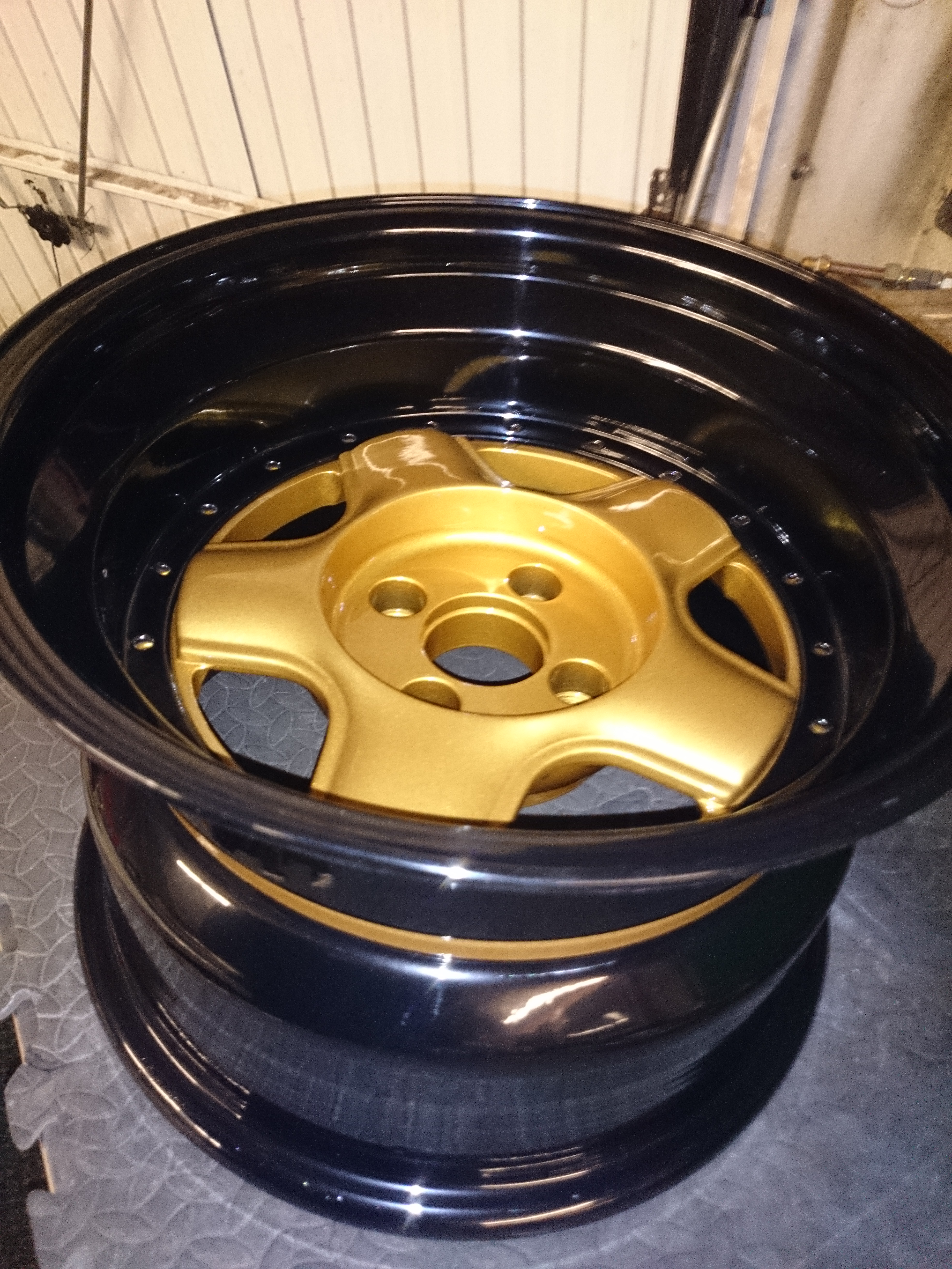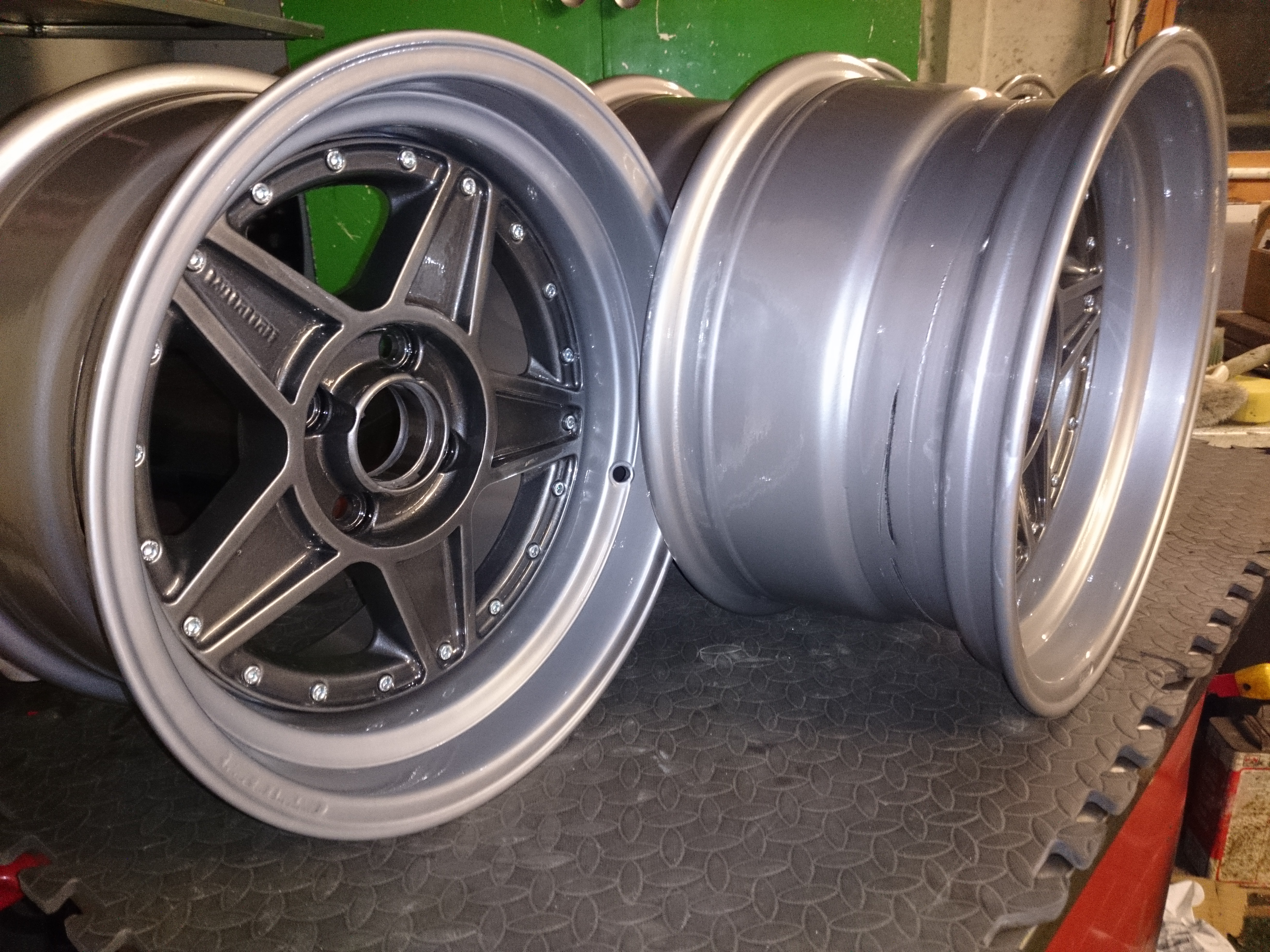 Bit by bit, over the last couple of months i've been shotlasting parts, powder coating, sanding, powder coat again so on and so on, until finally i had all the parts done, and it was time to rebuild them, and so, thats an awful long way round of announcing what my main task for today was, and that was to finally rebuild an awesome old set of rims!