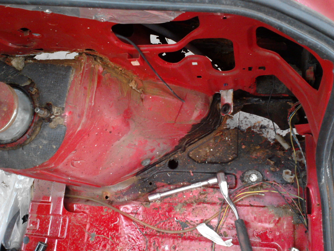 once we'd got all the seats out, carpet up and boot emptied we got poking with a big stick.