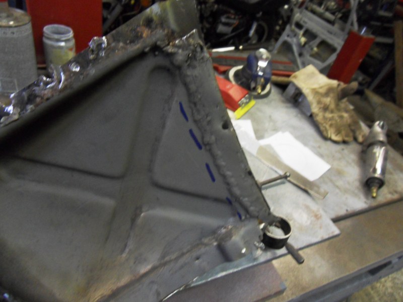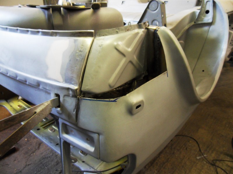 The flange on the rear wing section is reinstated. Then the various pieces are welded back into place to complete the repair:
