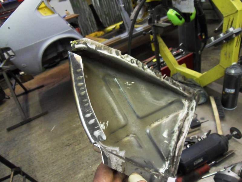This was the only part of the shell where the fabricator found some problems with welding the metal due to excessive impurities in the steel. Everywhere else there was no problem and all welds were completed normally as with the new metal the fabricator was using to make repair panels. Interesting how different parts of the car seem to vary so much in terms of the quality of the metal. This may go some way to explaining why some parts of these cars corrode so badly whilst other parts are relatively durable, and how the degree of corrosion varies so much car to car both in terms of location and extent.