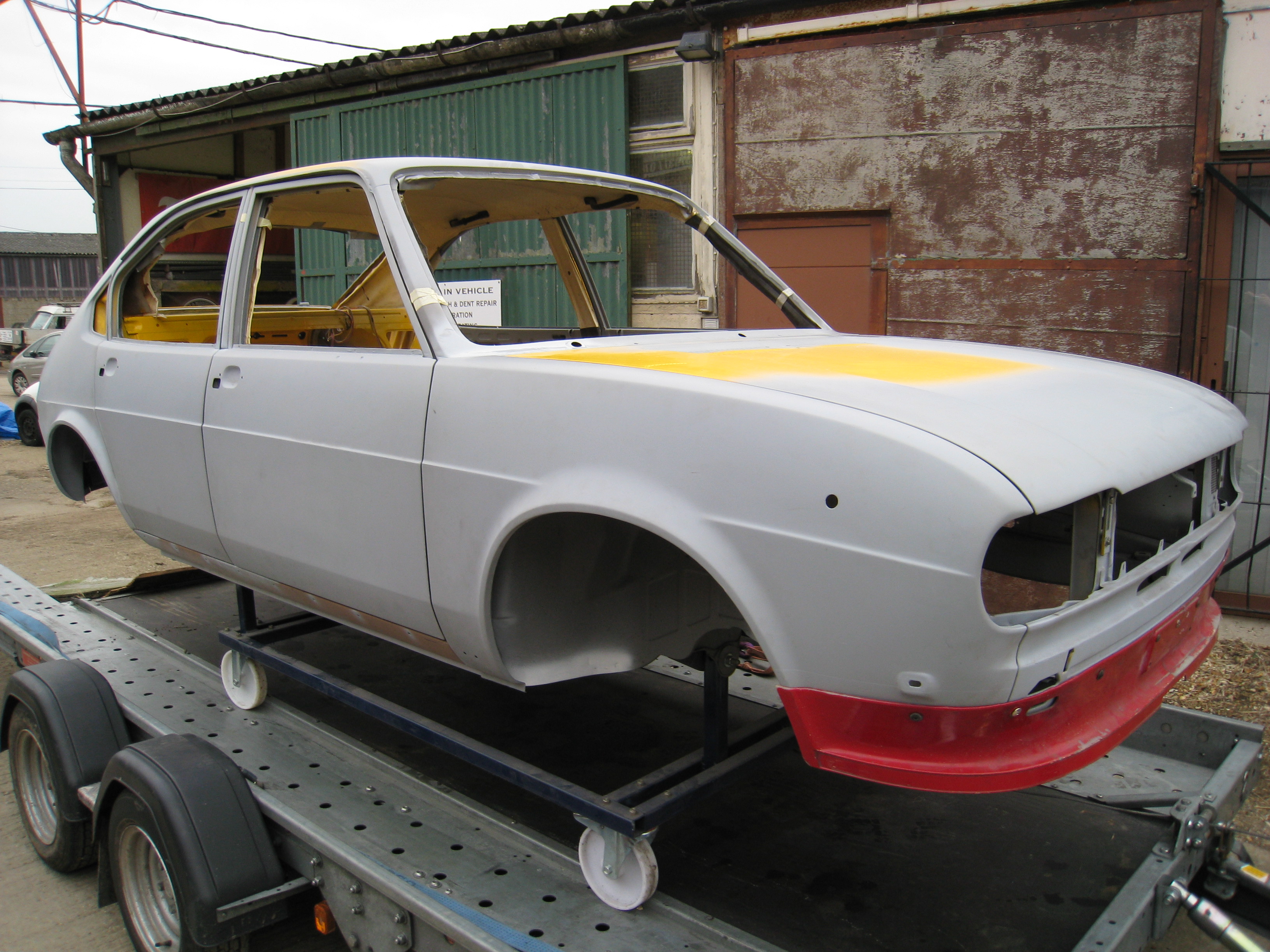 so we had to pray it stayed dry for the three hour drive back to the storage unit. Once there we can get some etch primer and give the panels a quick spray to protect them for the next few months whilst the shell will be in storage.