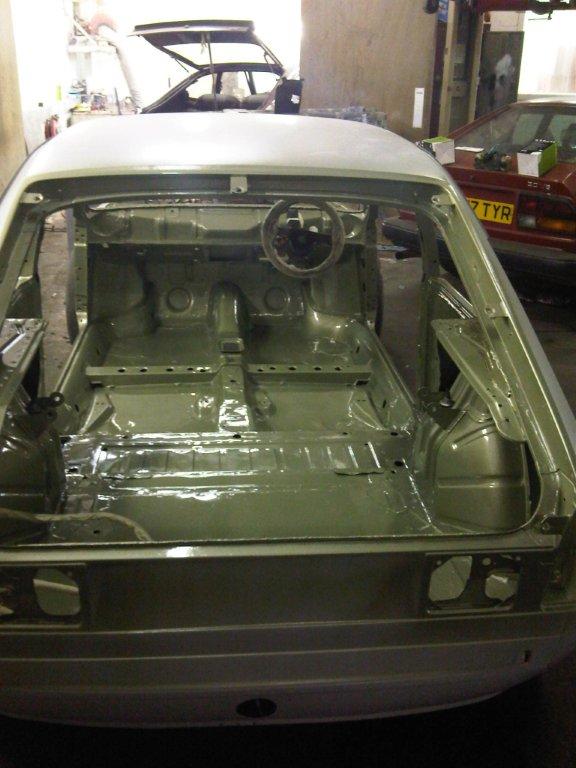 It was decided that the shell will be totally undercoated and only finished off in the top coat metalic green (Met Verde Aqua) on the inside and engine bay. Then the car would be fitted out with engine gearbox and running gear by Tom at BLS and then sent back for final external finishing.