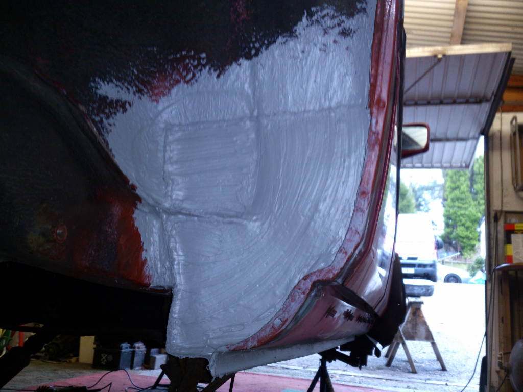 All areas of repair have been seam sealed, stoneguarded or similarly treated, and the main outer body is now awaiting the final stage of sanding back and painting. This is largely due to lacquer peel and paint fade typical of rosso red Alfa's, not rust!