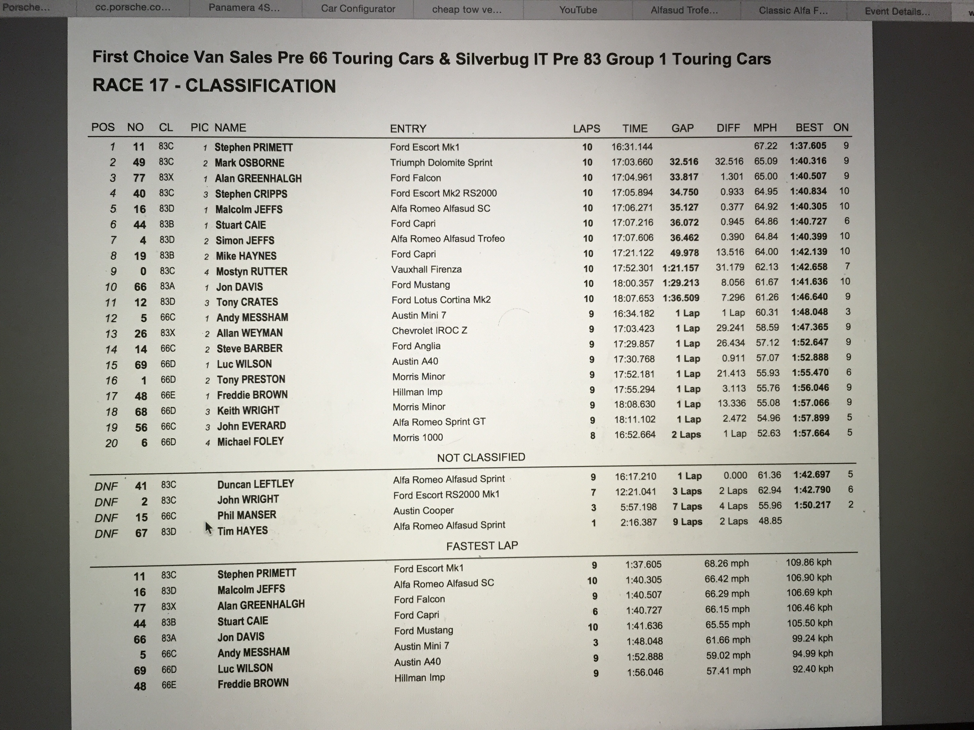 Thanks for the comment. Malcolm is Class D winner and we are waiting for confirmation that he is second overall based on Championship points. Second in the Championship could have gone to Malcolm or Stuart in the Triplex Capri. It was all down to Malcolm passing the Capri on the last lap at Club corner.