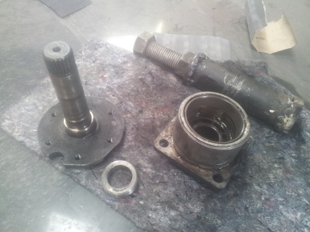 Sud and 33 output shafts and flanges are different (obviously the 33 flange has no mount for a brake disc but is also 12mm longer). The Sud has a helical gear pattern to drive the speedo cable, the 33 has a toothed wheel for the electronic pick up. Secured with a clamped on nut, not a nut actually but it has an outer thread of something like M1x21 or 1.5x22, can't remember. I made a special puller to remove, in my case, the 33 toothed wheel to be replaced with a Sud mechanical wheel. Used a large nut intended for the Sud front wheel baring, made a cut in it and enlarged it 1mm so it could be screwed on the speedo wheel retainer. That was hard to type and probably to understand but I found the pictures...