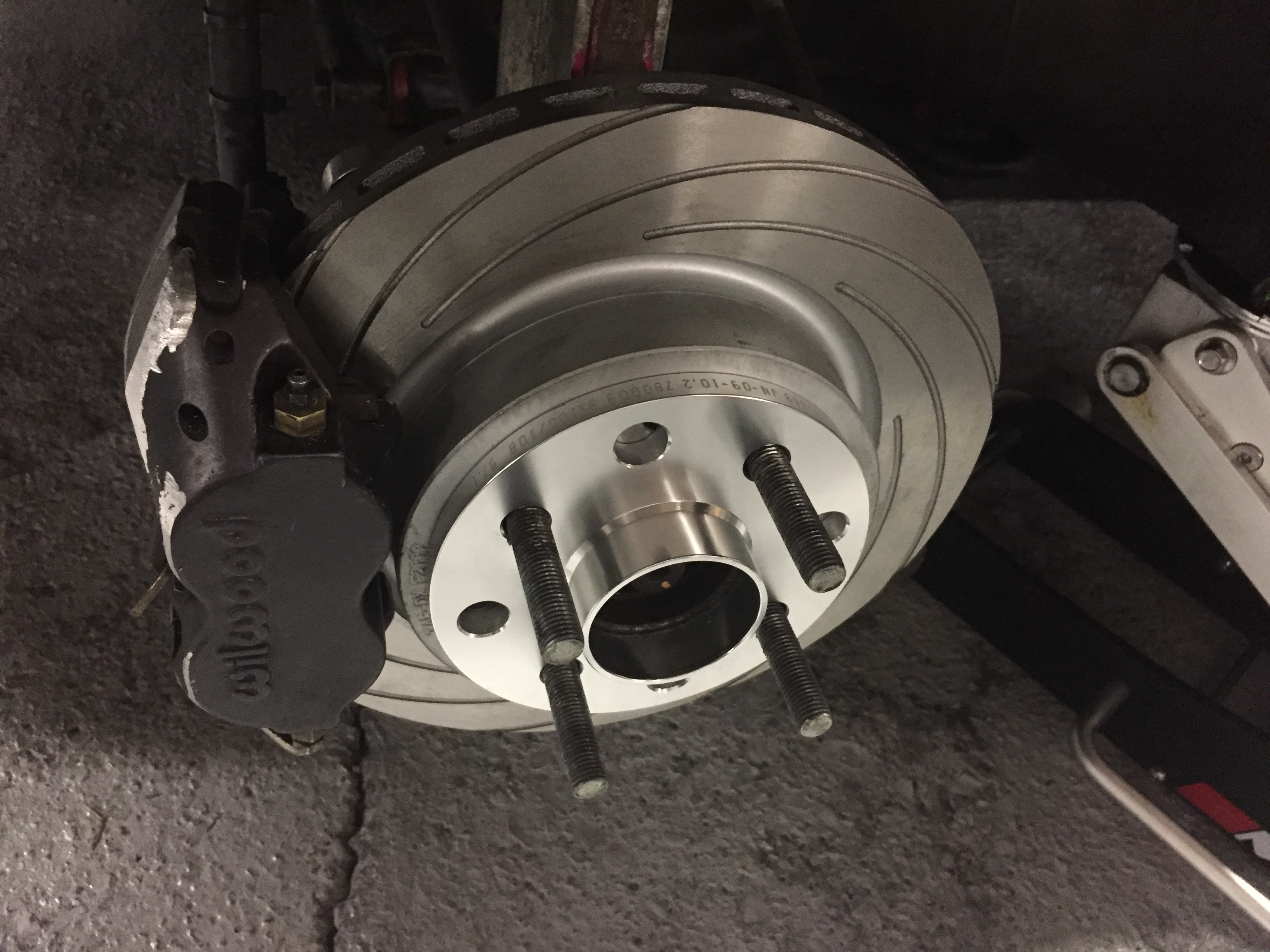 The Rover discs are machined and the new caliper brackets are finished. At first fit the caliper brackets needed 1mm machining off the mount face.