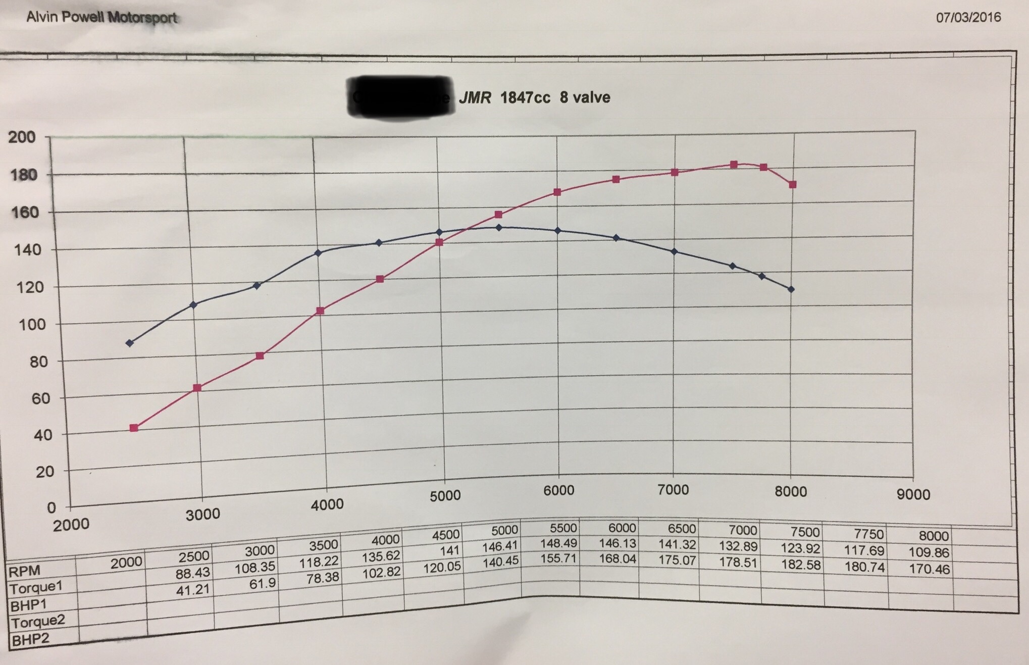 Here is a video of a Golf Mk1 with the same engine. Apparently, bags of torque. I am being sent the dyno plot. I am advised he is only revving to 7500 instead of 8500, the brakes are standard road discs / callipers and the chassis setup is not sorted.