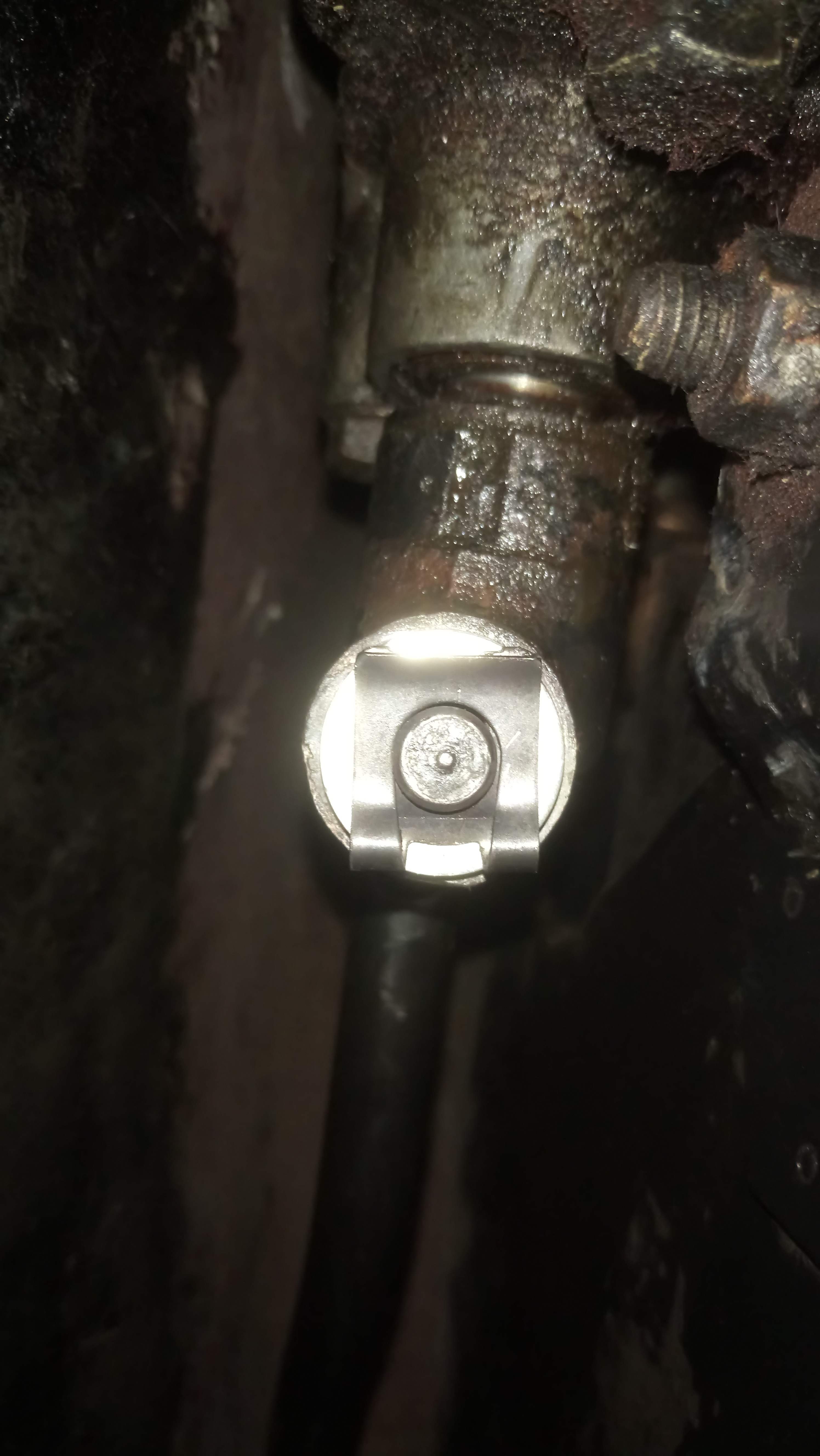 So once there and after letting the exhaust cool I jacked her up to see what had happened. It seemed that the circlip must have broken off letting the rod pop out. Managed to get it back on and put a couple of very thin cycle brake circlips in with a spacing washer and a couple of cable ties for good luck.
