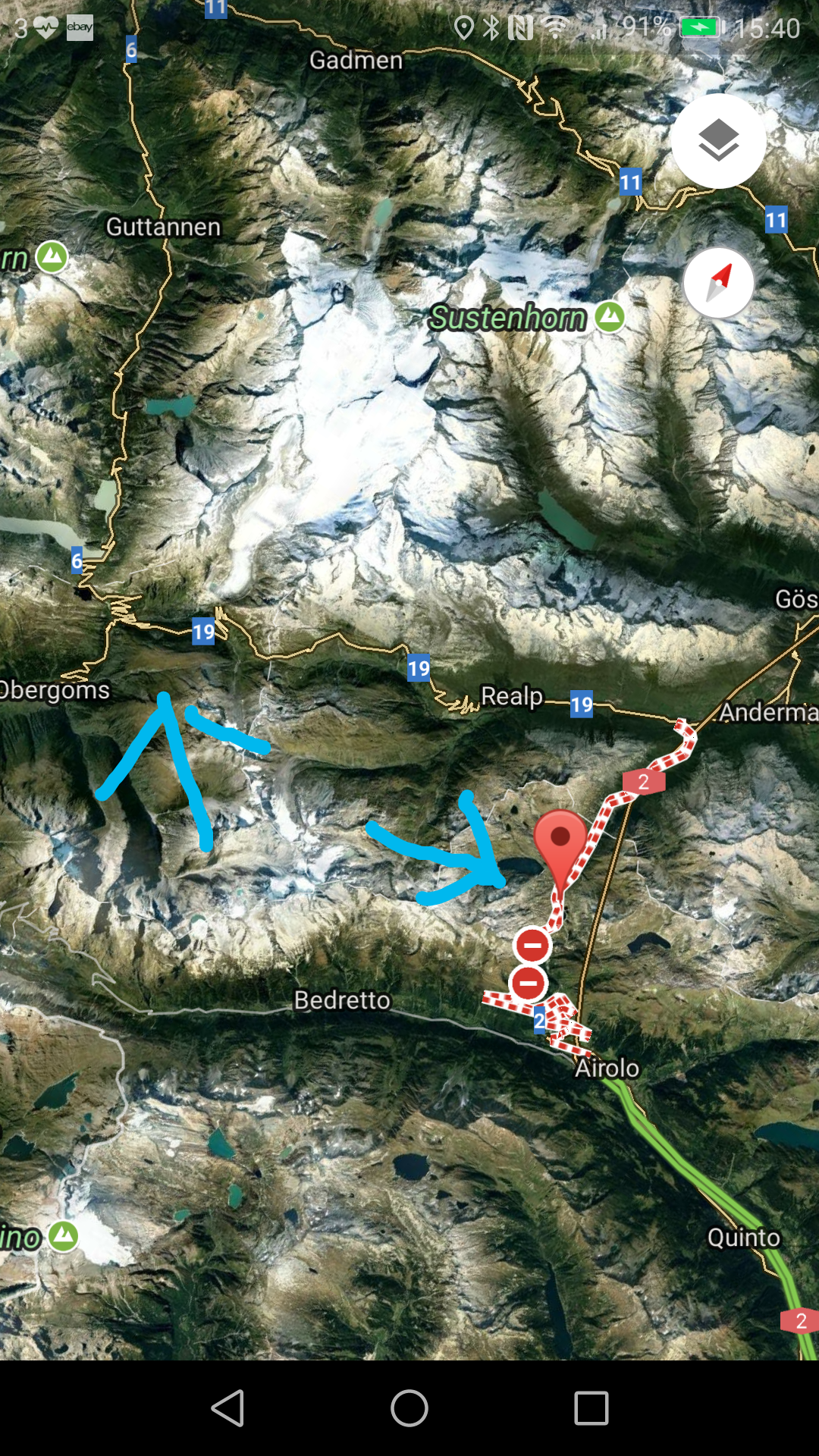 The arrow is furka pass right is gotthard pass . So could easily do both on root to Italy . Theres hotels before the passes . So could stop before and then enjoy them nice and fresh the next day