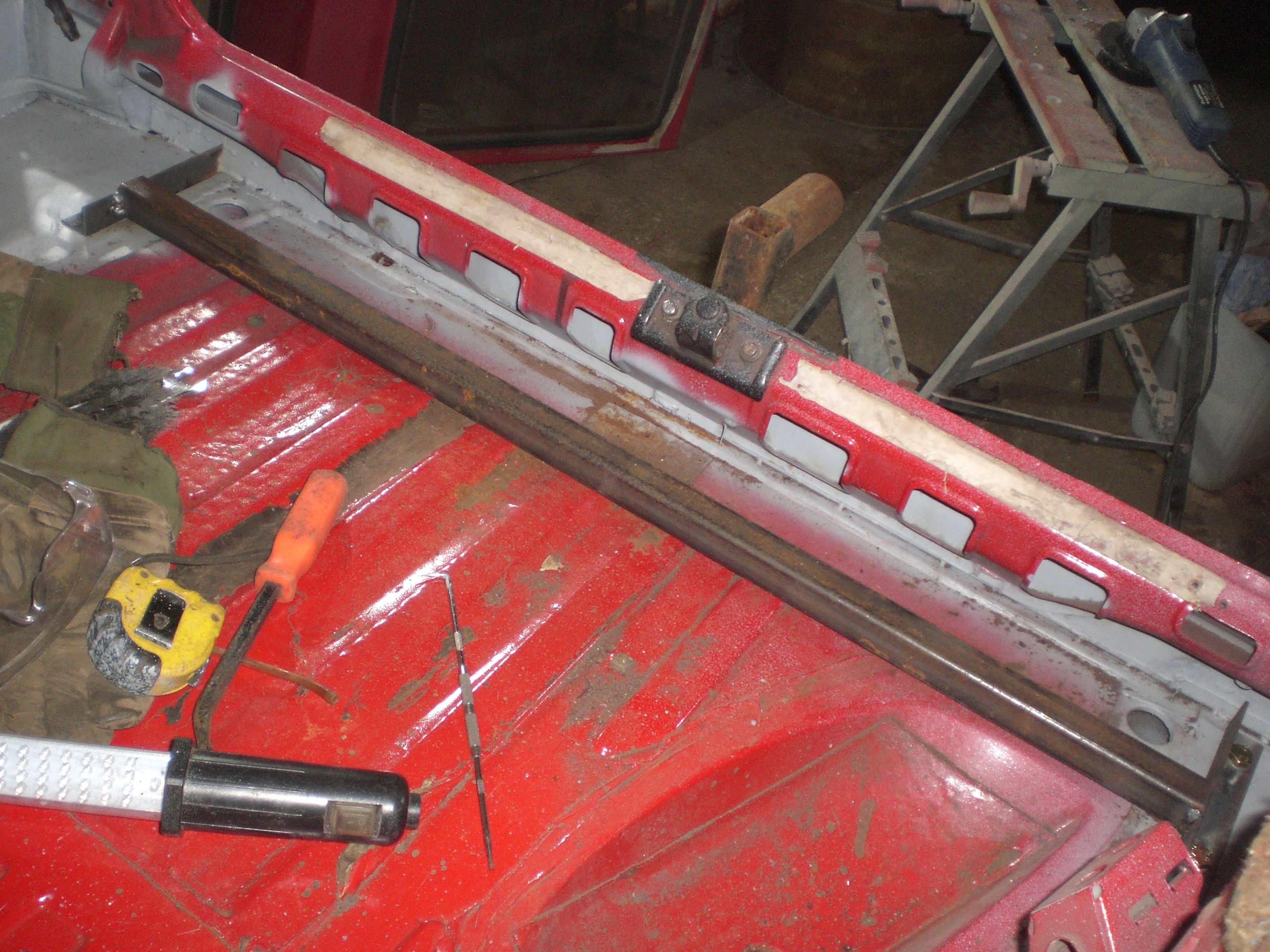 To further reinforce things I cut some angle for inside the boot floor so the floor gets trapped between 2 pieces of angle, which I then joined with some 2" box section.