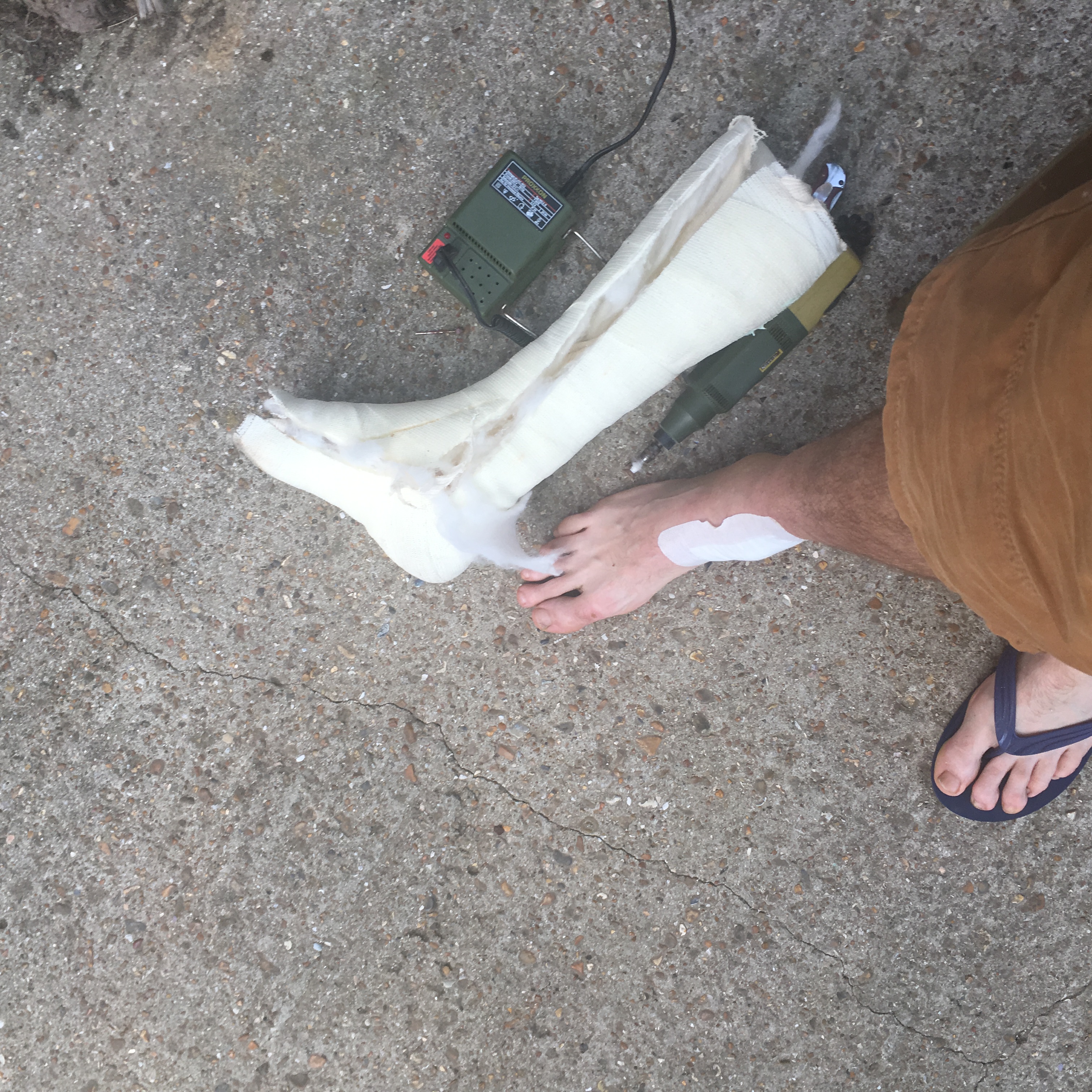 I was twisting my back and tripping over cast which was not good for my back so it had to go . And I’m home alone so no one could stop me