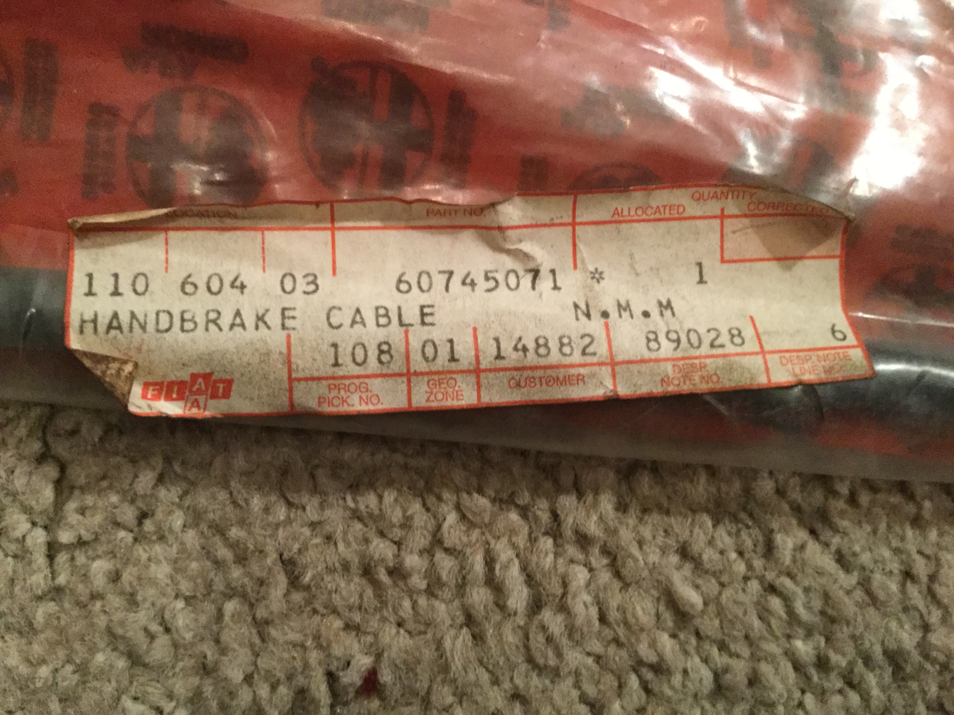 Re: NOS Genuine Handbrake Cable