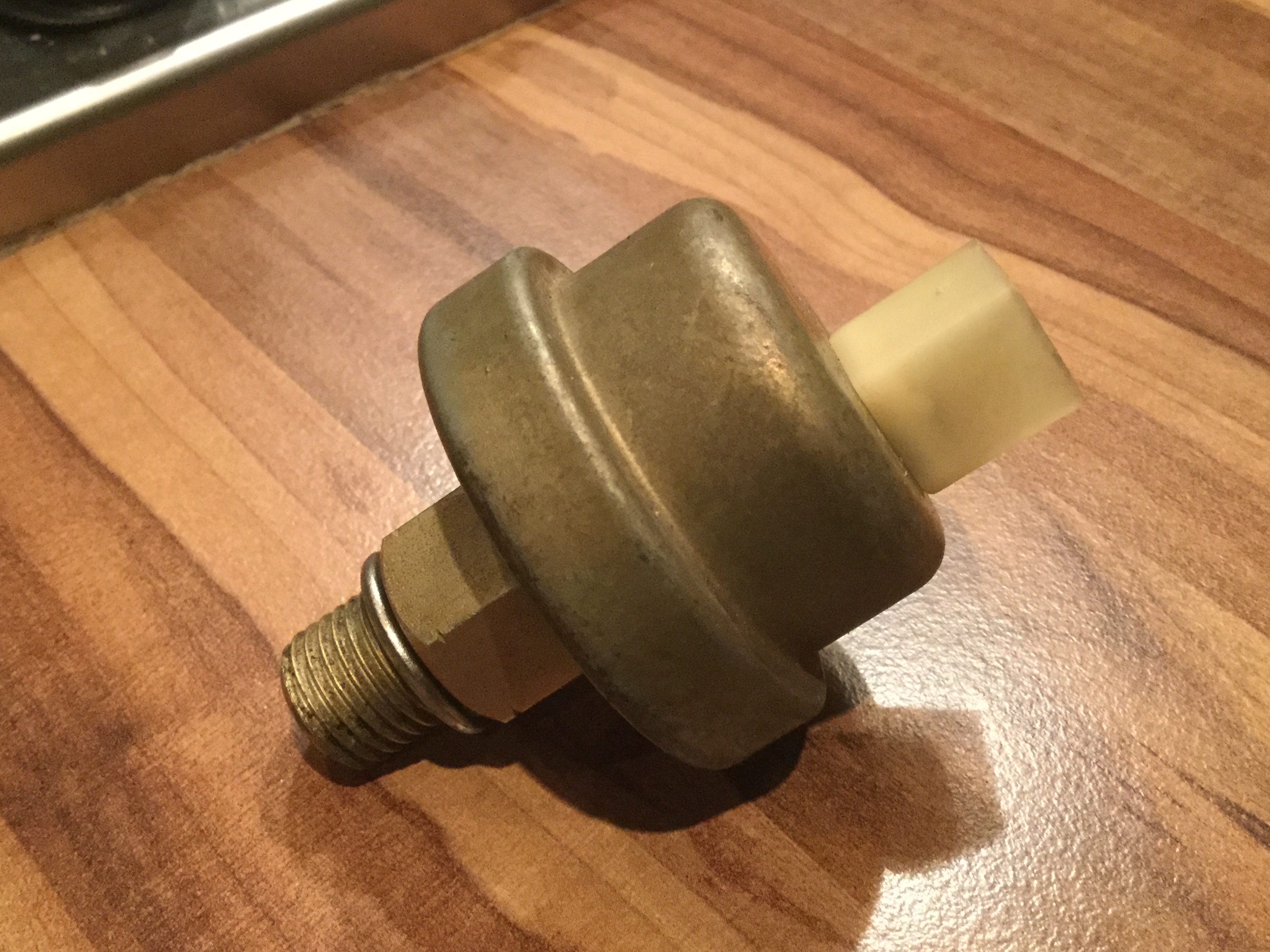 Another photo of the oil transmitter. I believe you can add this to your engine if it hasn’t got one and hook it up to an oil pressure gauge in the car?
