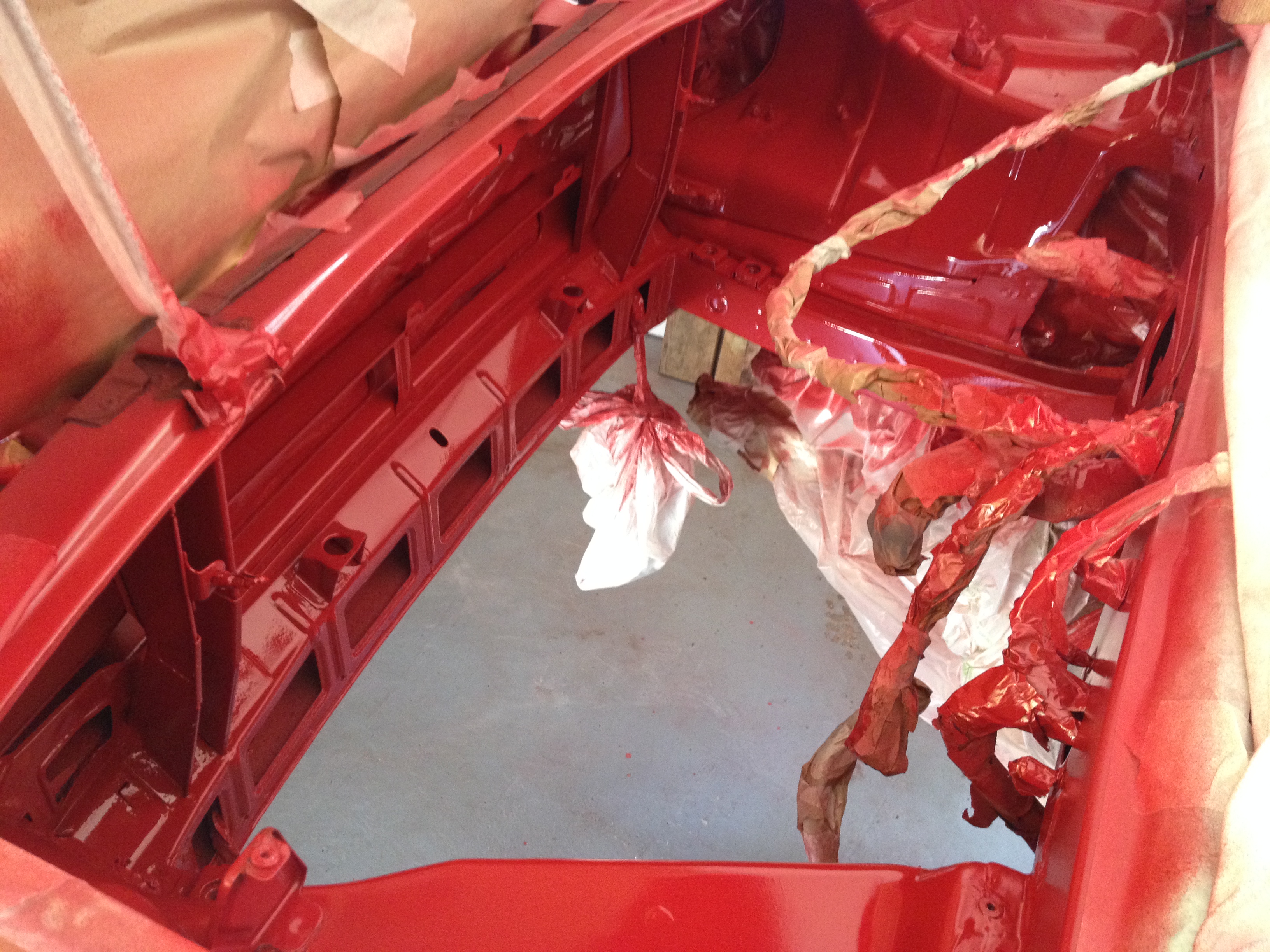 2’about 2 solid days prep - I started with a steam cleaner and got all the dirt and grime out, especially in all the nooks and crannies around the engine bay. I then used degreaser. I then rubbed down the whole engine bay. I wasn’t after concours, I just wanted to smarten it up so when a get a professional to give the whole body a respray, they wouldn’t need to try and spray around the engine. I think I used 120 and 240 paper. I was lucky, there was no rust apart from spots of surface rust where there had been chipped paint, so cosmetic filler only. I then masked up everything and used panel wipe to clean it thoroughly.