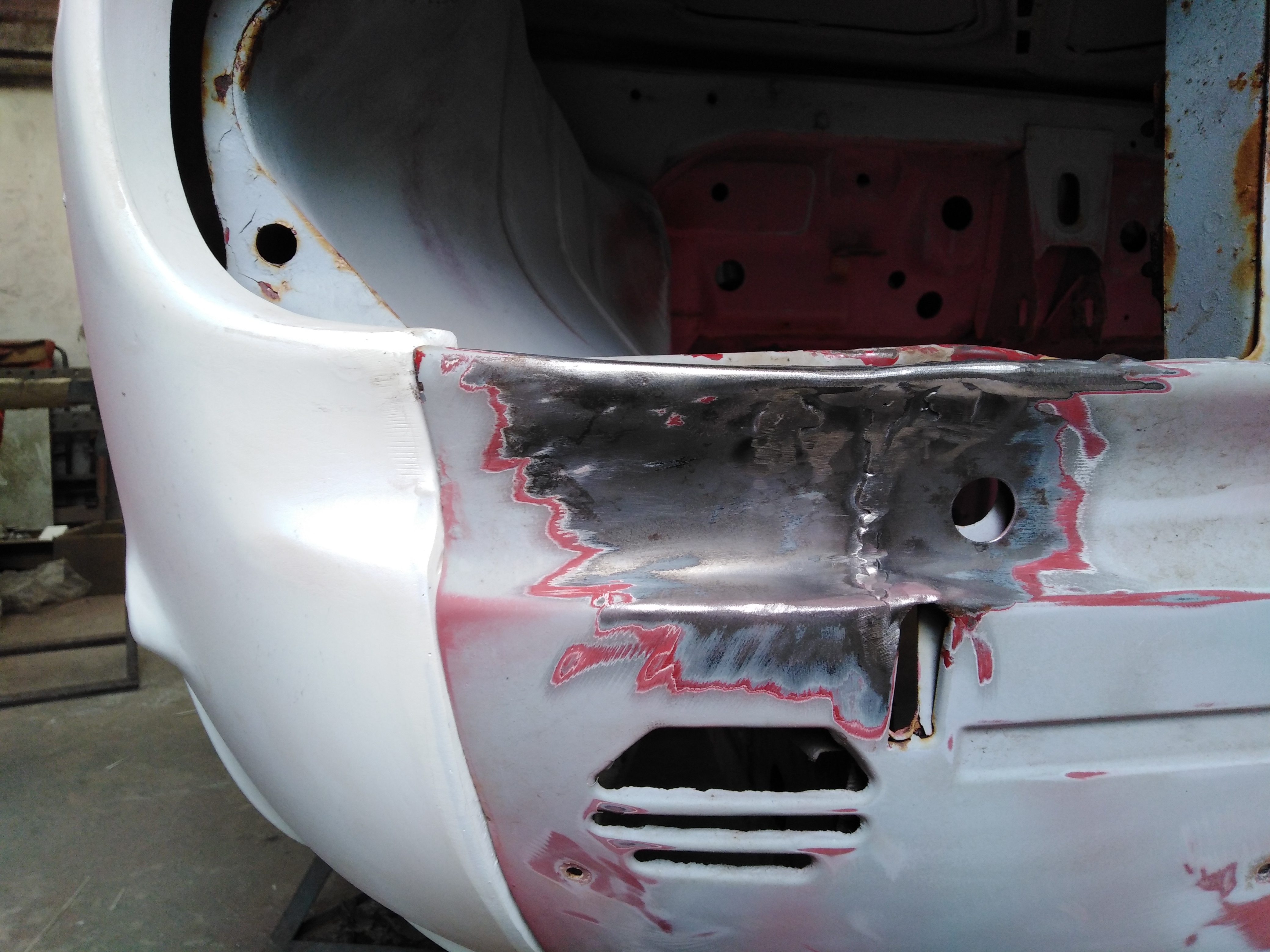 The sills have had the square holes that are for the sill covers filled in. I must confess to Tim that although he said to weld them up I just couldn't, it's rare to have a sud with all the holes in such good condition so if anyone in the future wanted to fit ti skirts it'd be harder. So I knocked them in my a few mm and fibreglassed over the holes, gives the smooth look but the option is still there should it be needed further down the line.