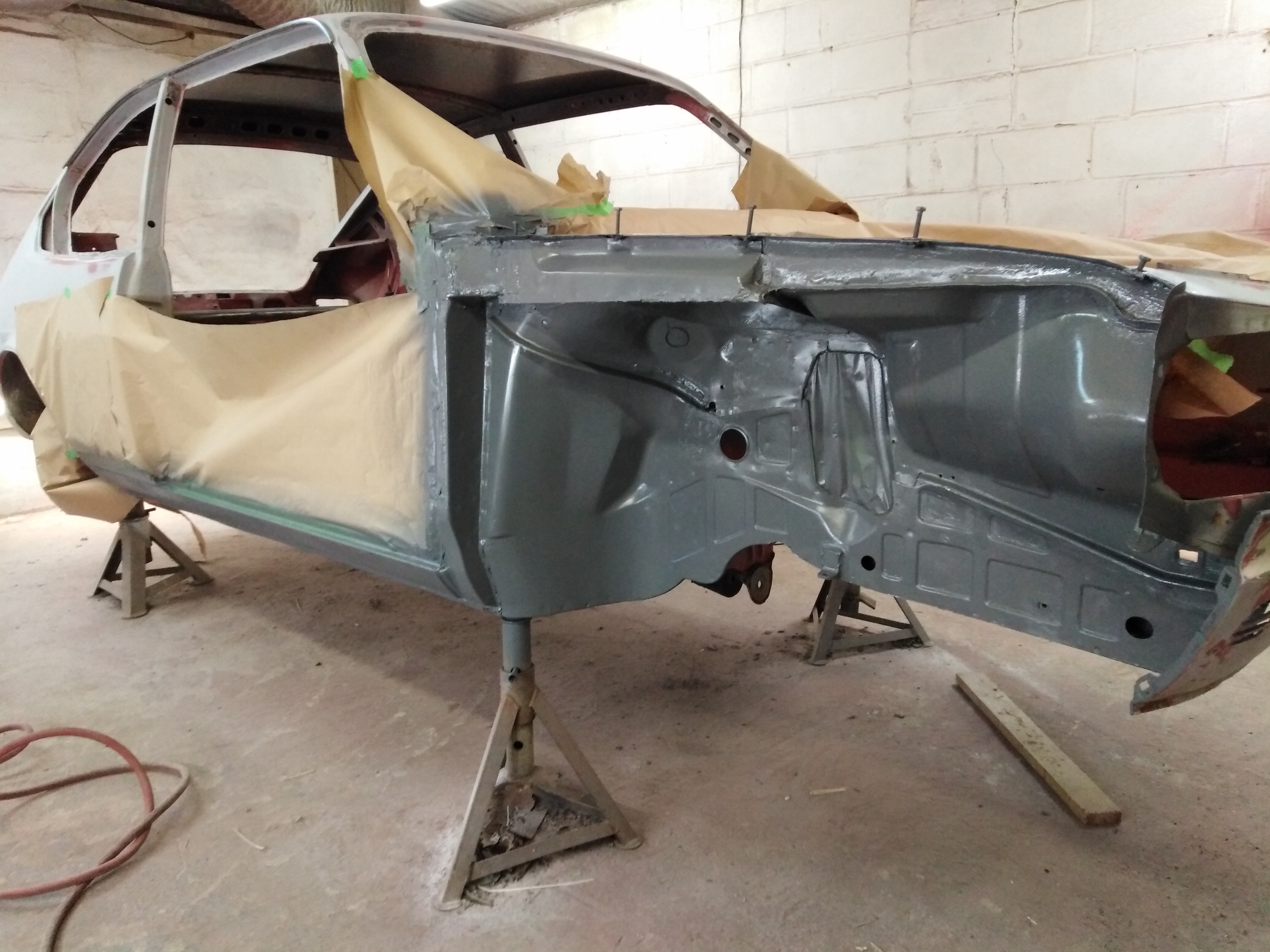 Cars always look better when in one colour instead of the patchwork of repairs, the grey etch primer goes over everything bare metal and all so I know once that's stuck then the next layers won't be liable to flake off.