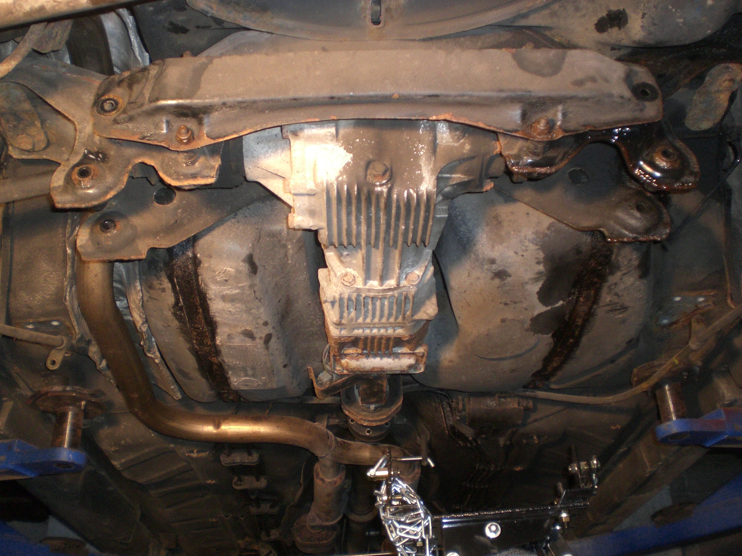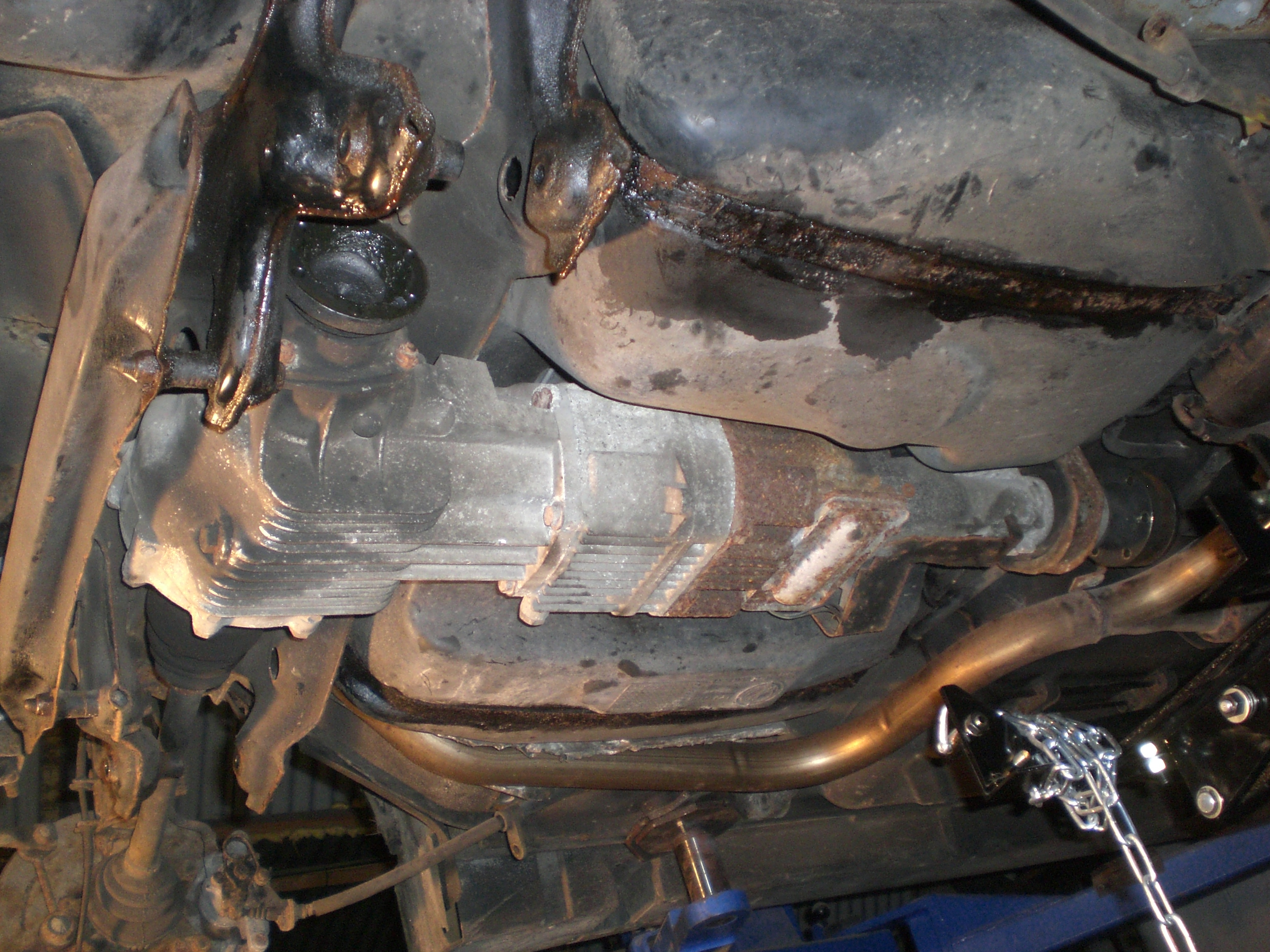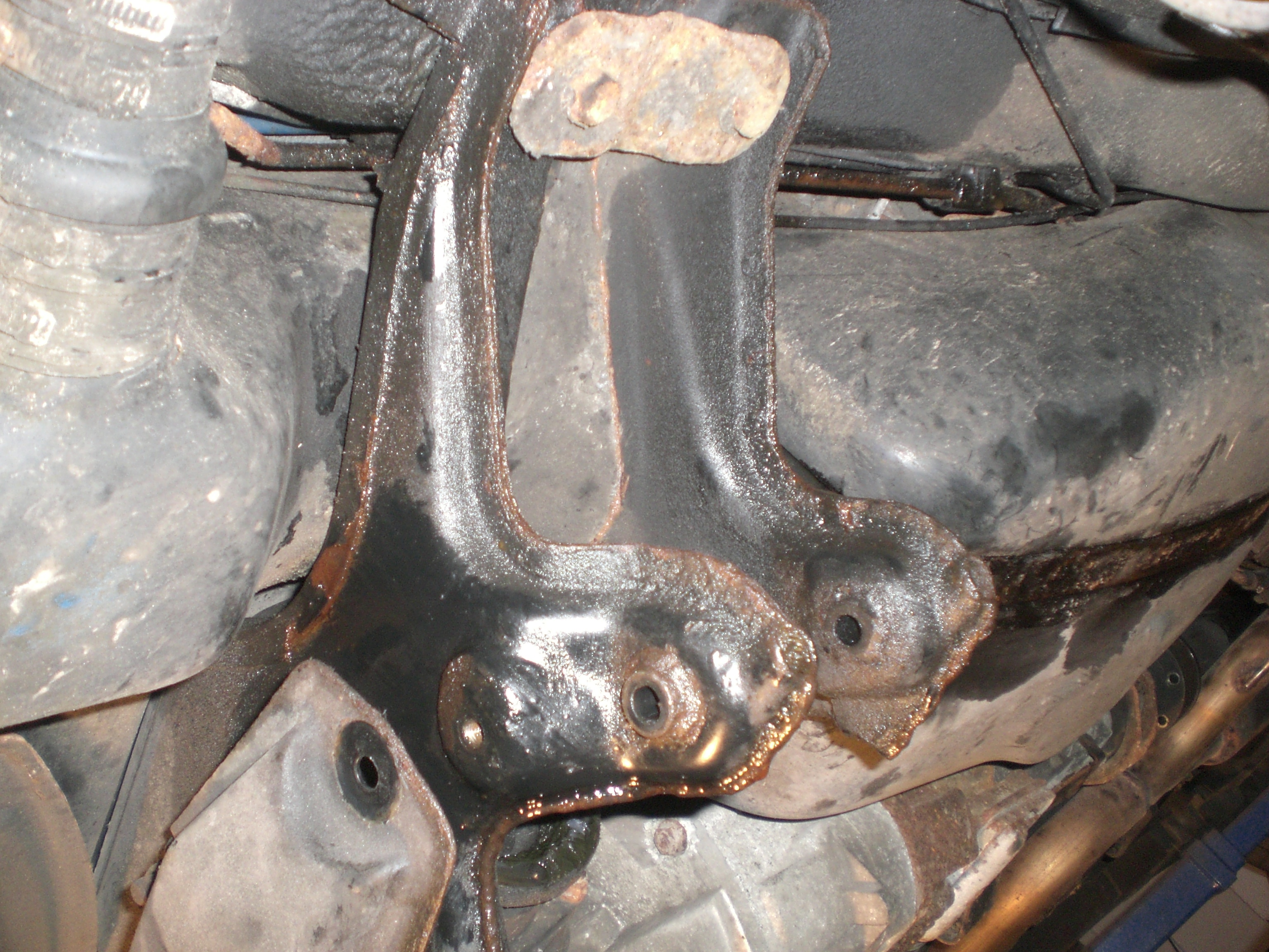 I'm kinda hoping that Kev has a few pix of the big job that was involved in replacing all the hydraulic lines for the fancy transmission (Viscomatic - a torque distributor) Big thanks to Andy and Bob at Ludford for a job done without any guidance but common sense. The rear subframe, lower suspension arms, giant fuel tank, differential and Viscomatic itself all finished up on the floor. The job was precipitated by failure of one of the steel lines at an unreachable place above the tank, resulting in a couple of litres of power steering fluid (common reservoir, believe it or not, and the pump pressurises the lines) on the garage floor. All the lines, except one that Bob did about six years back, were replaced, all the metalwork cleaned and painted, and the whole thing is now up and running in permanent four-wheel drive and - fingers crossed- fault-free.