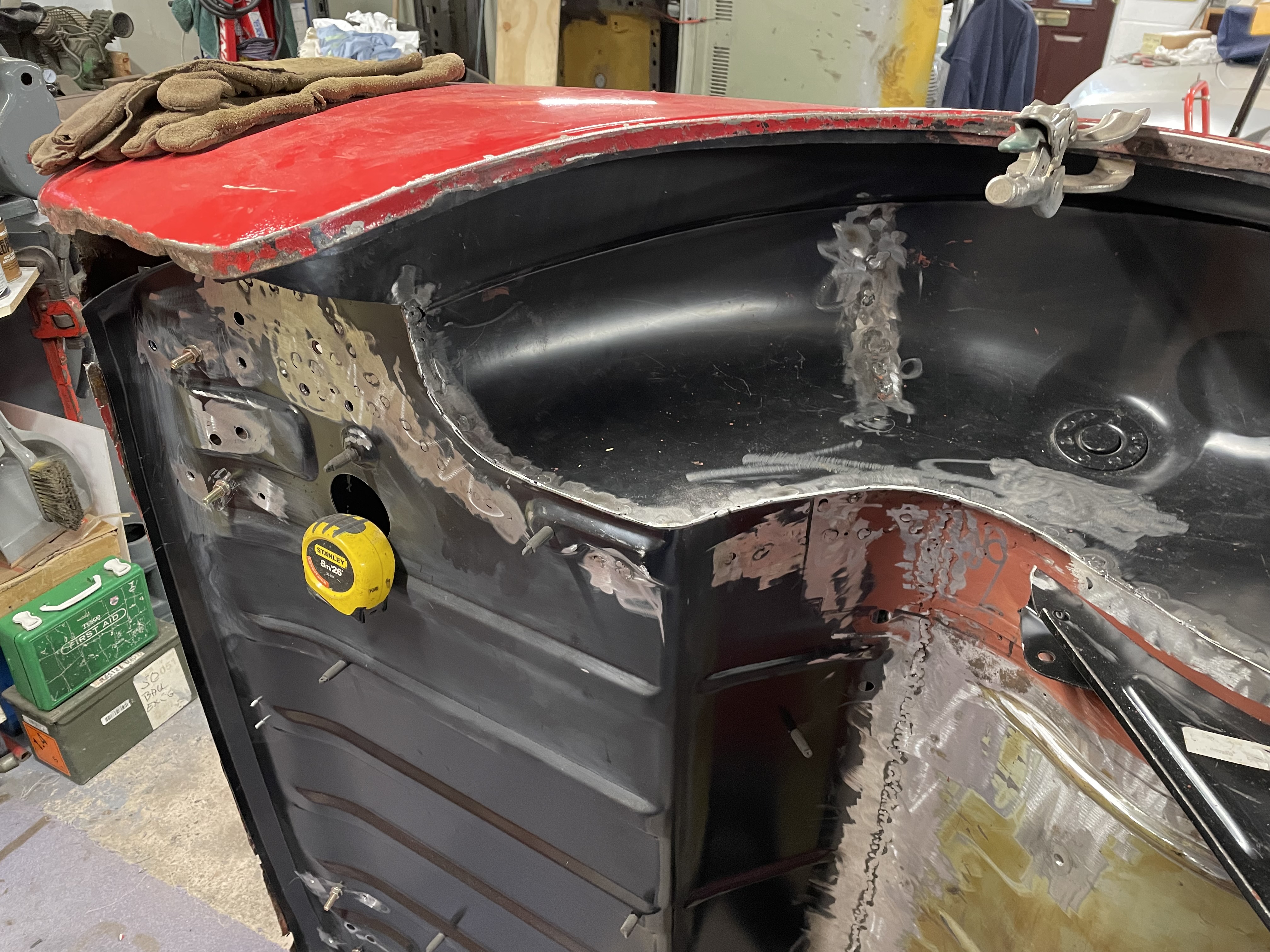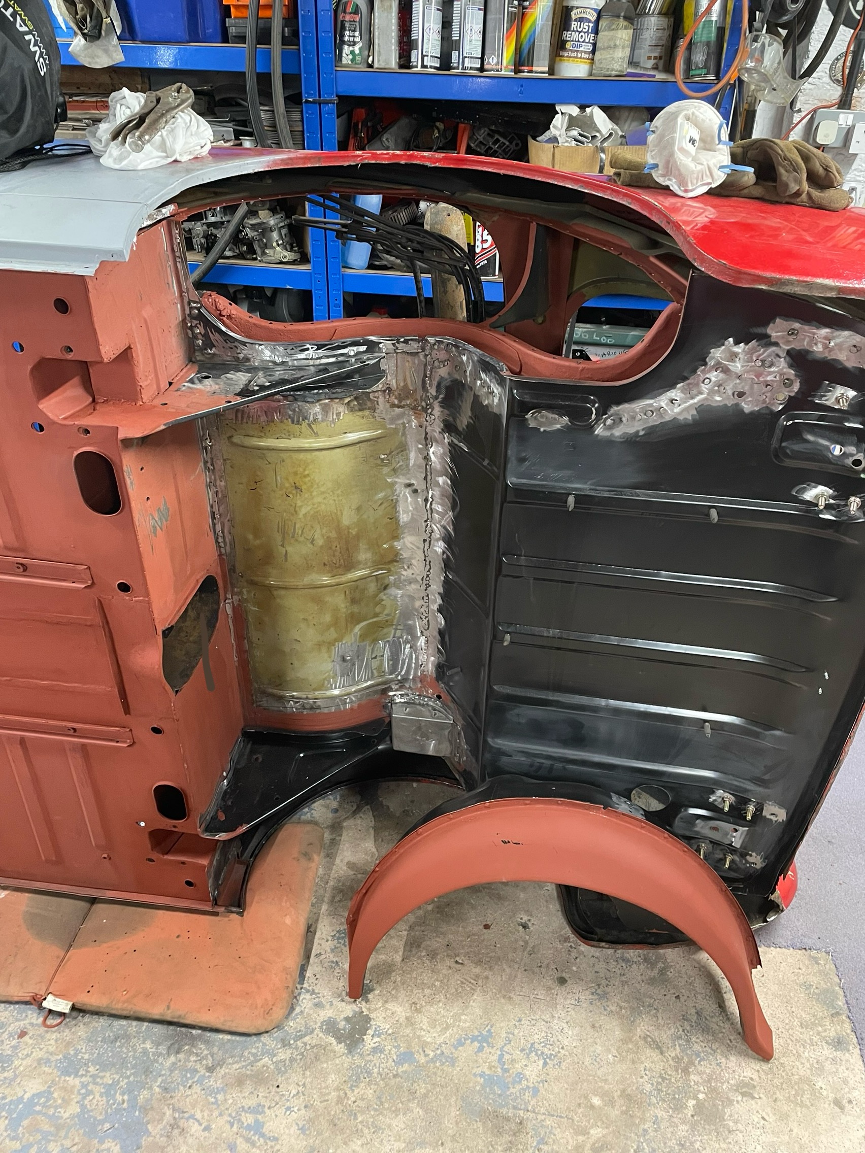 New boot floor and both inner wheel tubs. I’ve also fitted a new rear panel. We’re fast approaching the end of all the major welding. There’s still a few welds that need tidying up then it’s on to the actual prep for paint etc. the underside will then stripped back to bare metal again and I’ve decided to treat the underside with U-Pol Gravitex textured finish. The underside will then be sprayed body colour