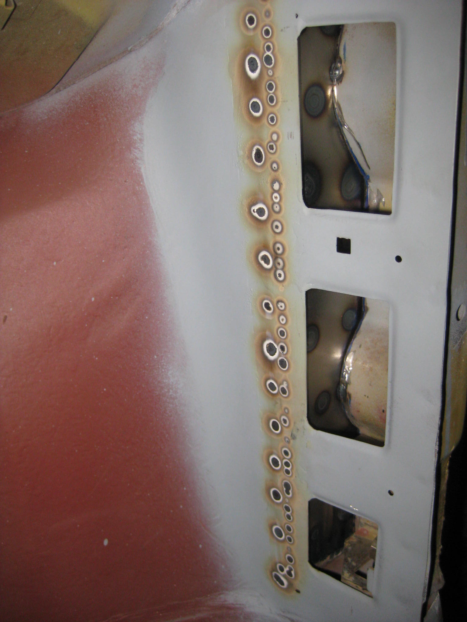 Once I was happy with this I added some etch primer and then some sealant and pop riveted it into place as it left the factory