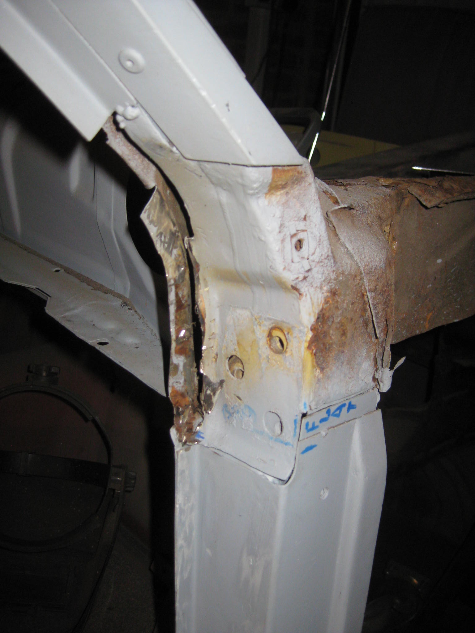 The bottom of the screen / top of the 'A' post are has multiple layers, one of the reasons it rusts so bad and it is all hidden from view only visible once you go looking