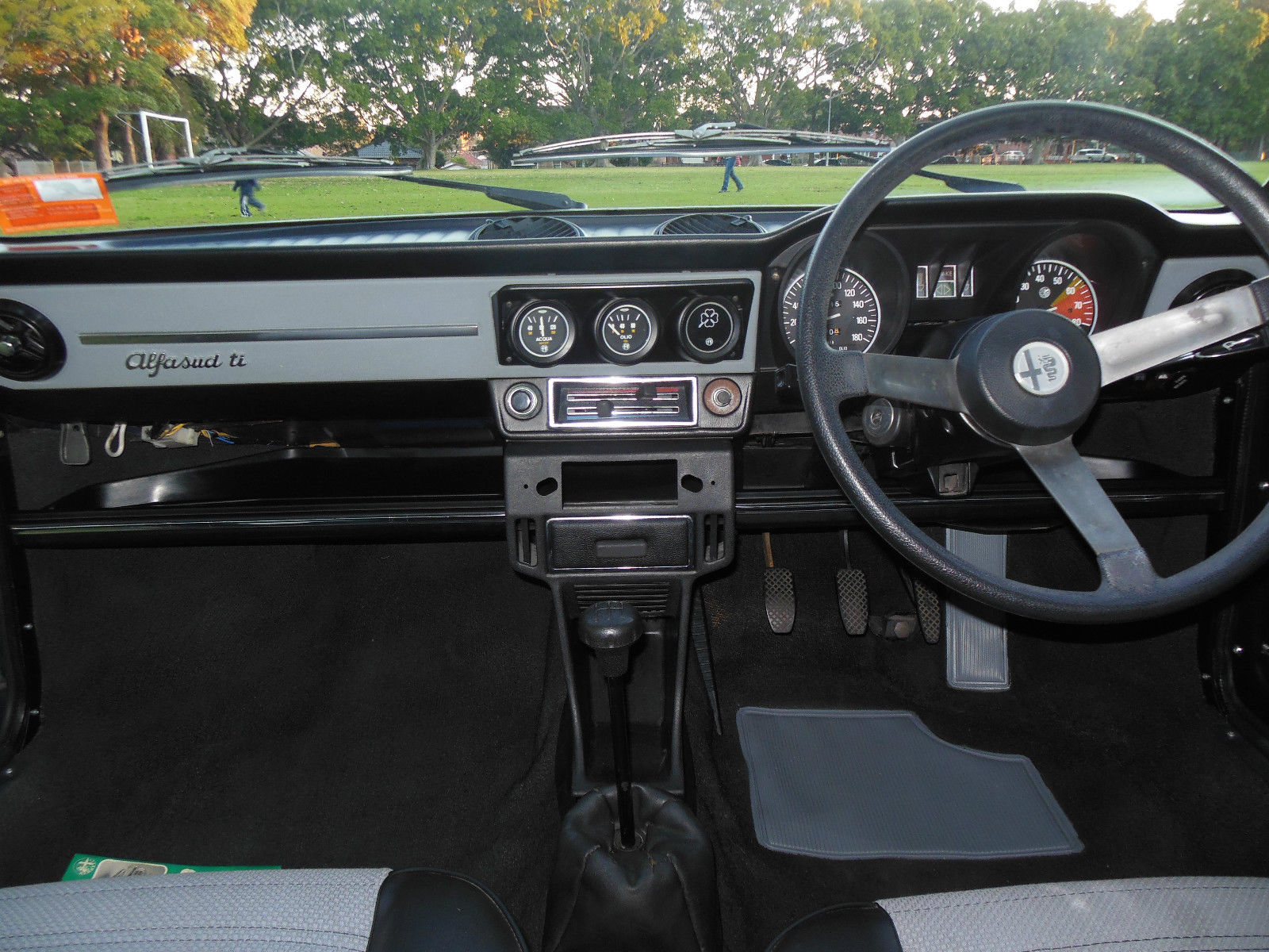 At the moment it has the wrong steering wheel fitted (from a series 1 four door) and the radio blanking plate is missing. Luckily I have been collecting Series 1 Ti parts over the last 5 years and have both items in my stash and in very good condition. Otherwise, as far as I am aware from the vendor and the photos he sent me the car is absolutely complete and original, just as it left the Melbourne dealership that supplied it to its retired lady owner in 1977. The car is one owner and was purchased by the dealer/vendor from a deceased estate three years ago. It had been in storage unused since the late 90's and needed re commissioning. The dealer has carried out work on the brakes, clutch, cooling system and general servicing in order to get the car fully roadworthy again. It still carries its original Victoria number plates and apparently has the jack, toolkit, instruction book and original bill of sale. It has approx. 58,000 miles recorded and was very well looked after as there is no sun damage to the dash or interior and the paintwork is reported to be all original. Interestingly, it was first painted red at the Alfasud factory and then the shell was painted over again in dark blue before being assembled. I have heard of other Series 1 Ti's in Australia and the UK that have this double paint colour quirk. Presumably they painted too many shells in red and later switched them to other colours according to demand. In some of the photos I was sent you can see the red paint showing through where there is overspray on the underside of the boot frame and under the front bulkhead. Maybe the extra layer of paint has helped preserve this car. I will post some more photos of the engine compartment and underside when I have time.