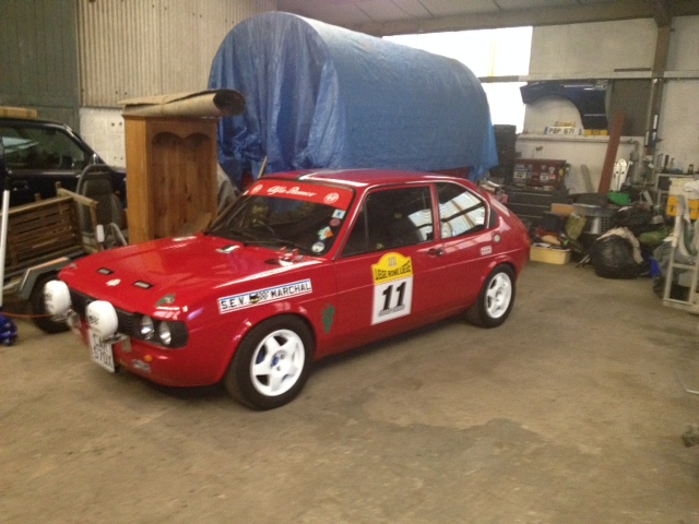 Shrew - Its a 1974 1286cc Alfasud Ti Trofeo so I assume the stuff you are seeing is part of the Autodelta kit. The engine is fresh from re-build and supposedly 150bhp. The car has a long race history. Hope to be able to tell you more in November.