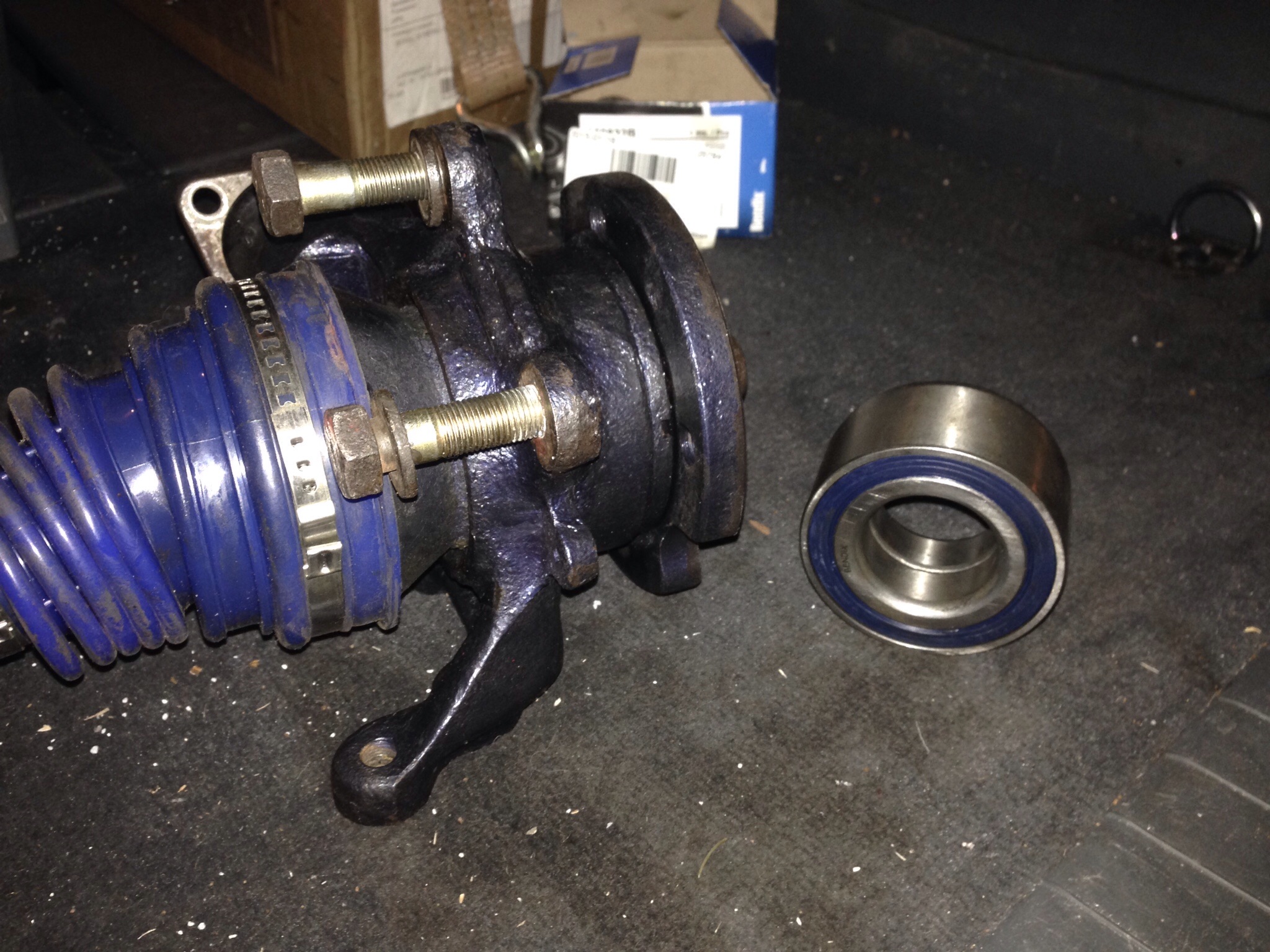 Slow progress due to new house and moving, but made a trip to the car yesterday and mountet the engine. But, as usual a new challange when checking the left hub and wheelbearing. This is not moving easy enough round, and a new bearing was ordered.