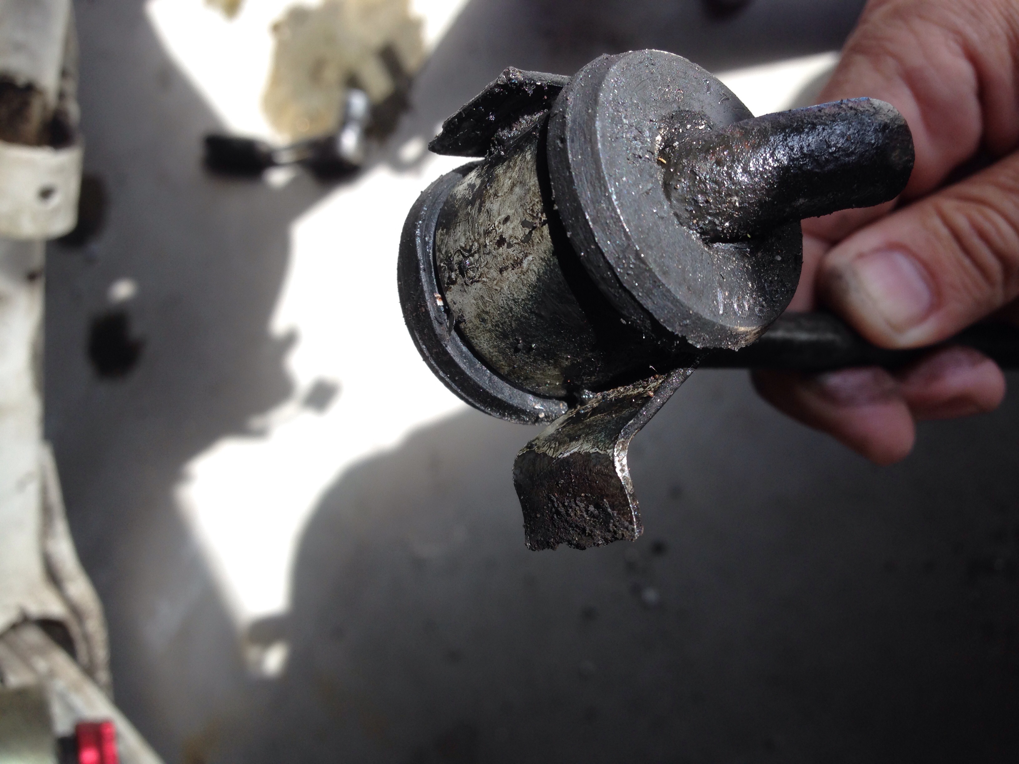 The side engine mount had come off and swinged into the inner cross of the axel.