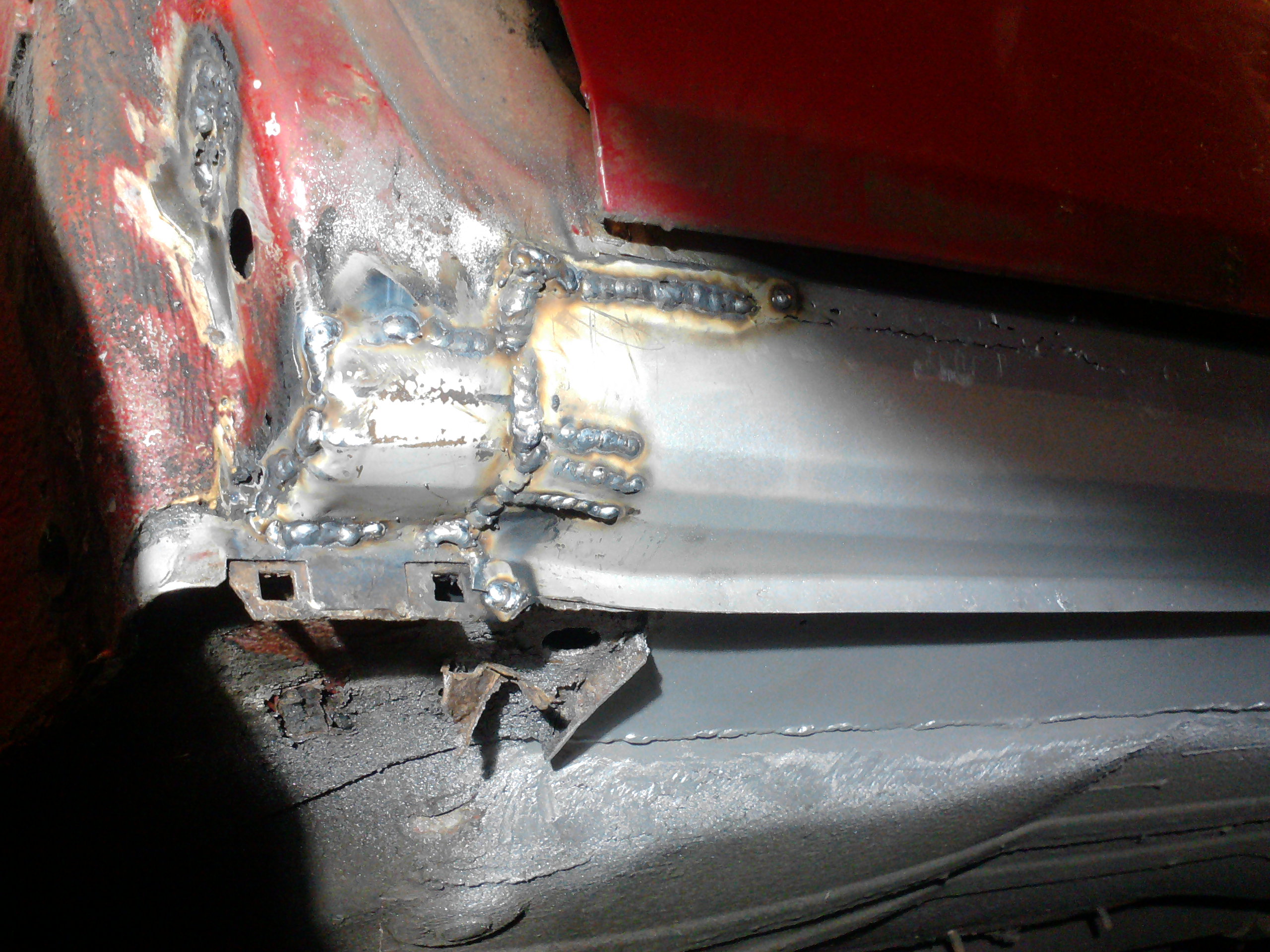 the top joint has a joggled finish on the new sill so that was fitted under the original sill which leaves a nice channel to weld into.