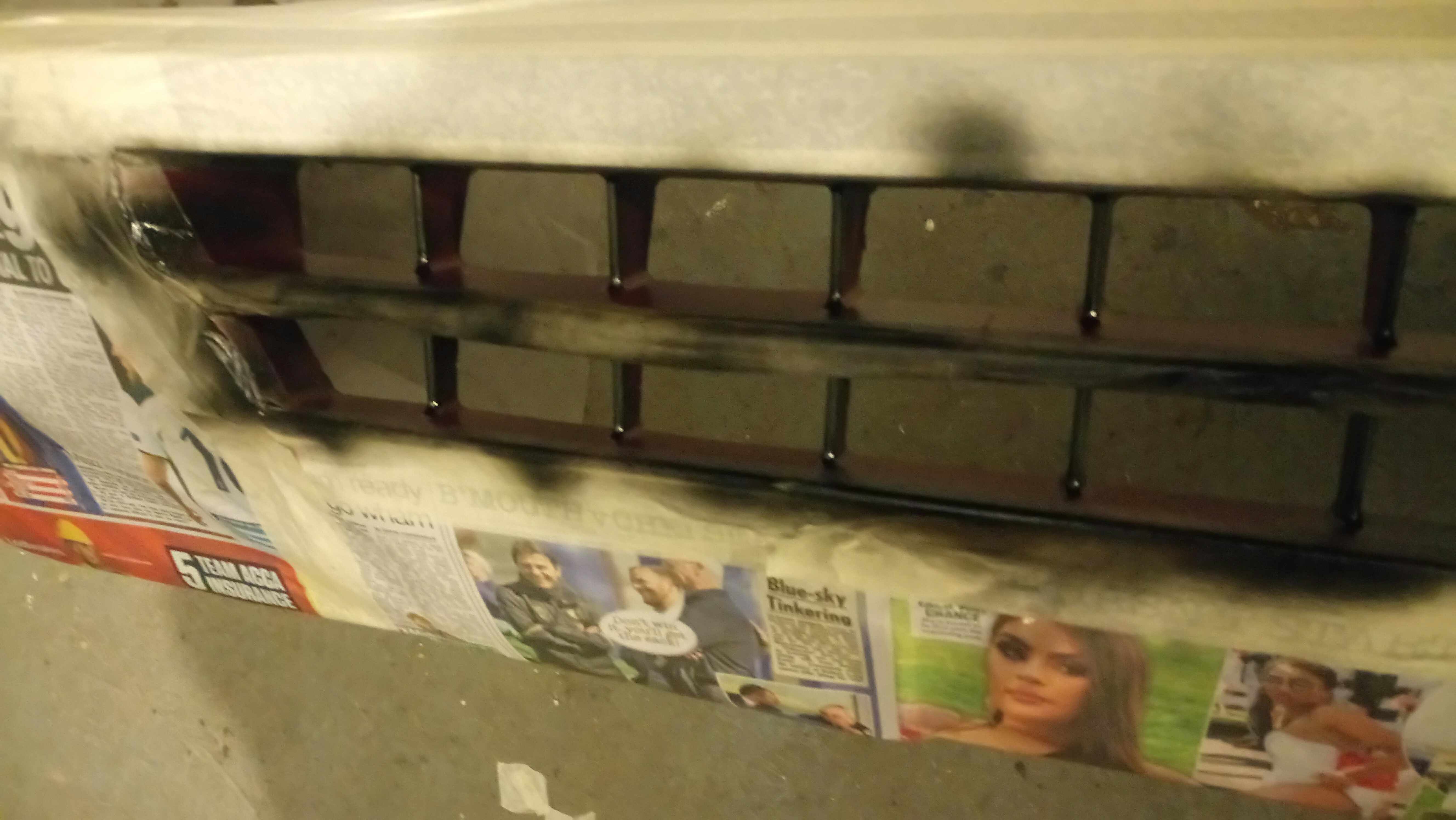 A couple of hours spare this afternoon, so had a look at the front bumper to add in the black section in the slots which are in front of the radiator as per original spec. Clearly all was painted red by Kev knowing I was going to add the satin black later which meant that the paint was adhered to the plastic.