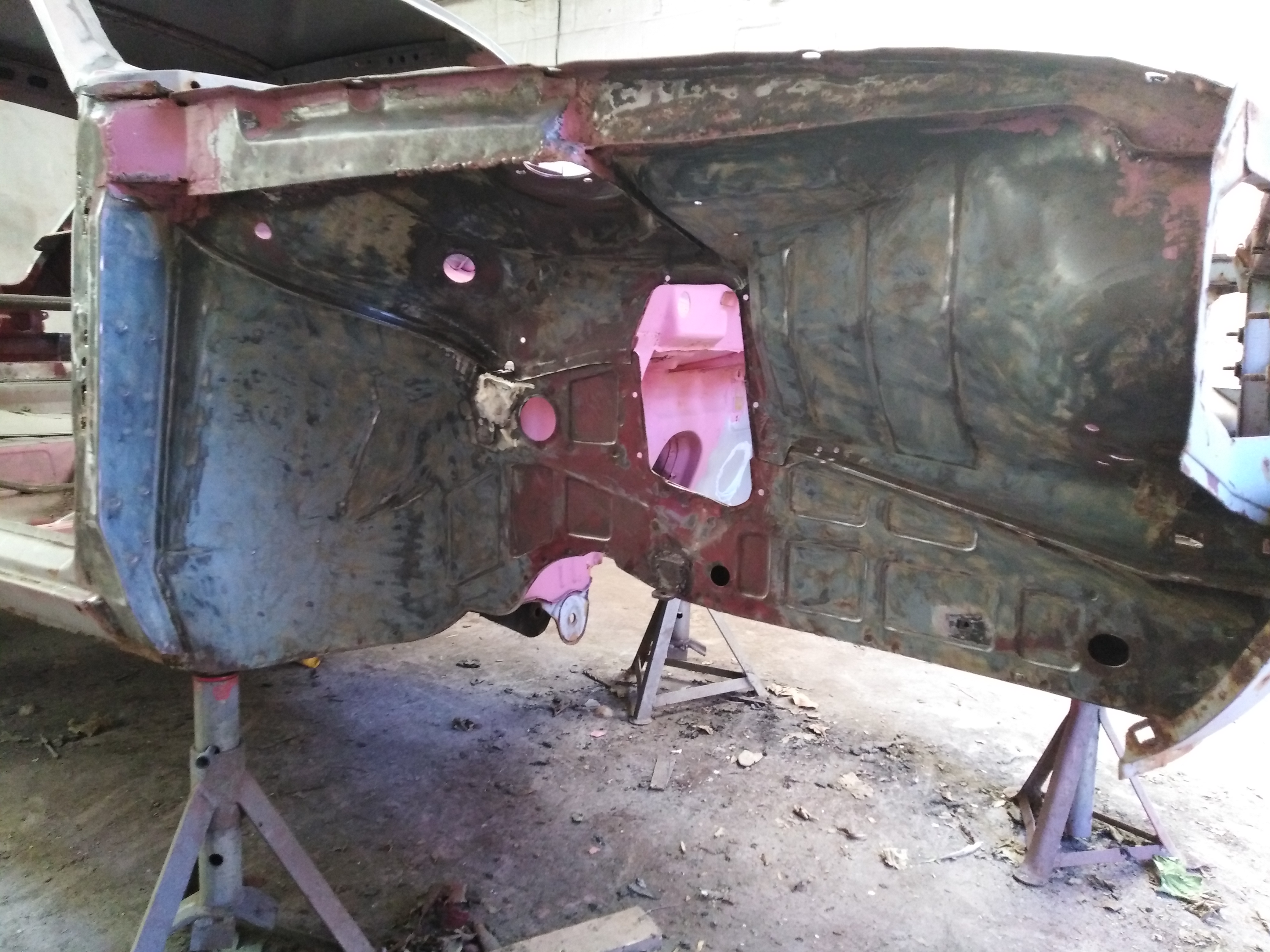 Remarkably the areas where they all seem to rot out is in good order. Usual cracks in the opening where the steering arms go through but the bottom edge still good, seams from the inner bulkhead where they all rust between the two joined seams is very good.
