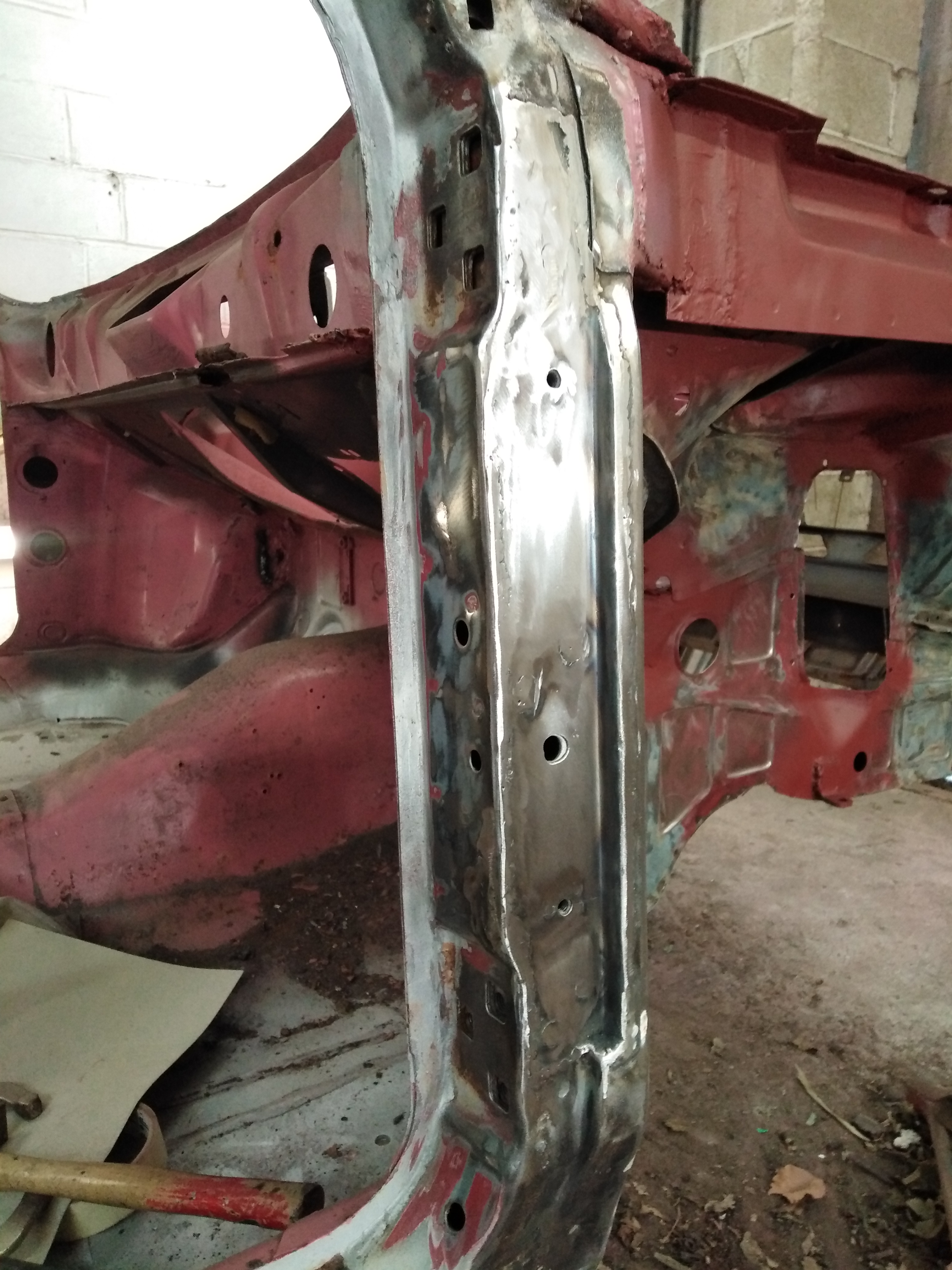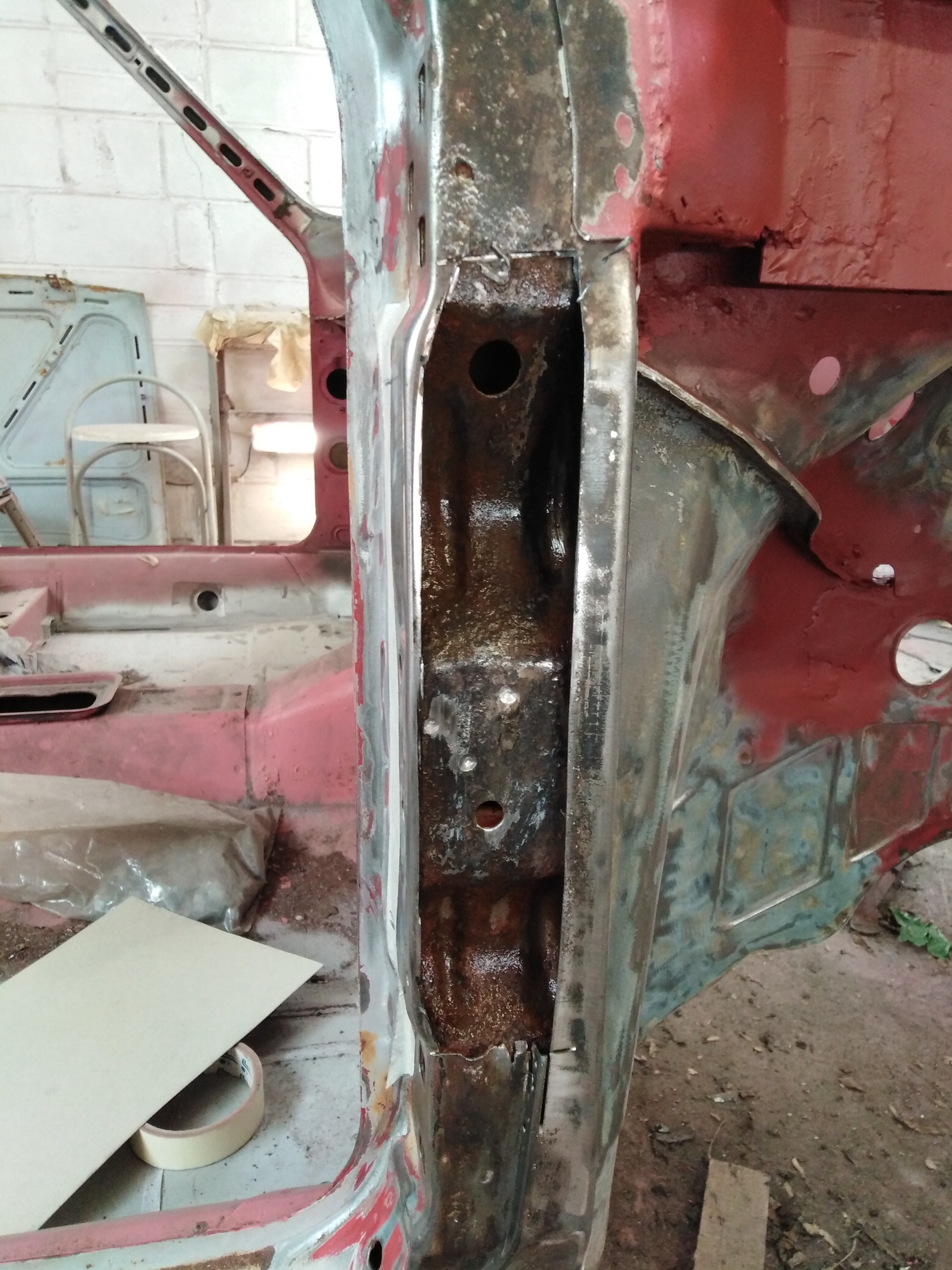 Luckily the inner strengthener was in good condition, just a clean up and treat then some weld through zinc primer later before welding was done.