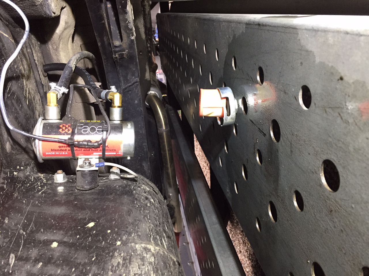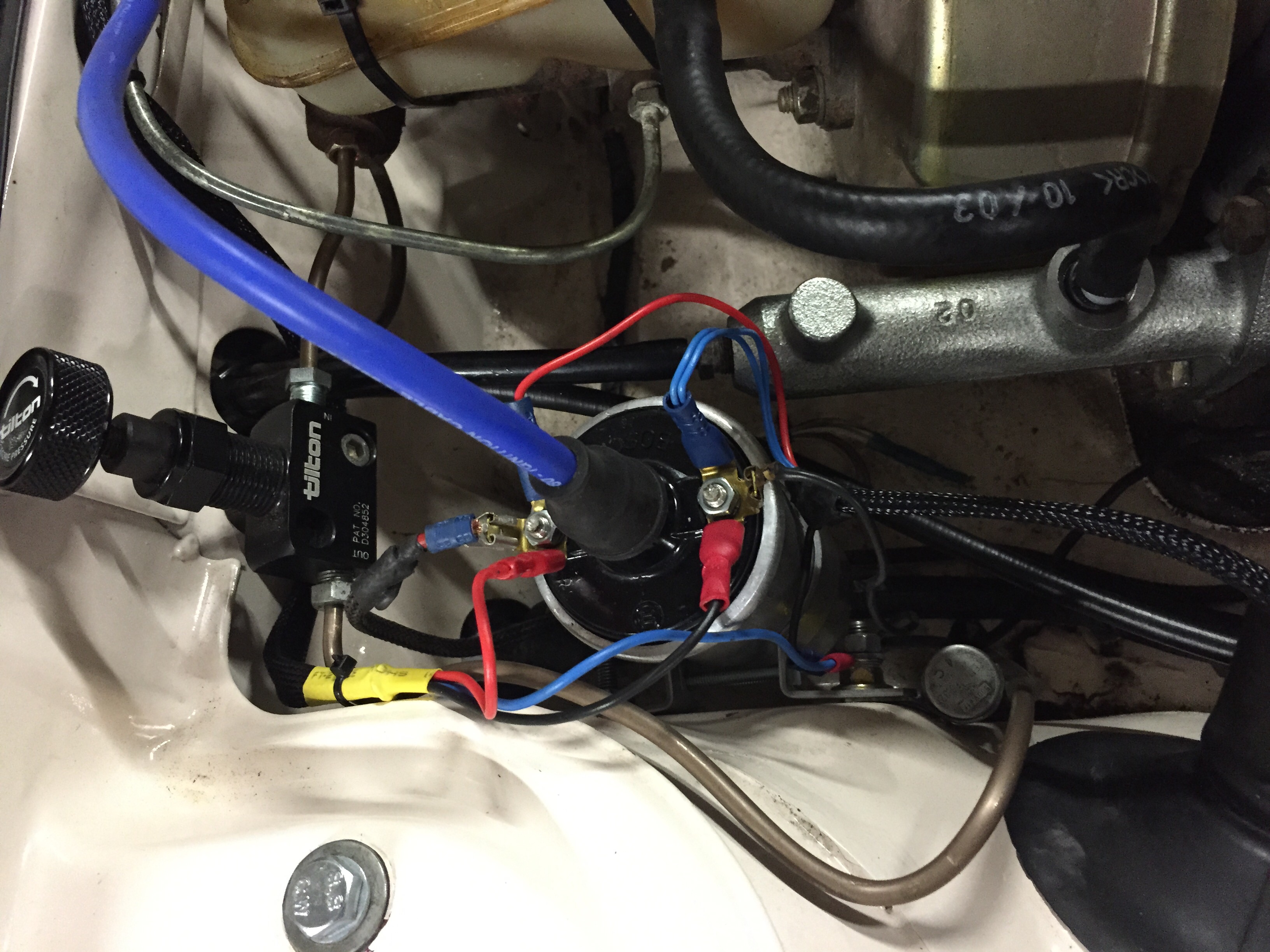 The fuel tank feed pipe in the boot is now routed through the lower side of the wheel well right next to the pump.
