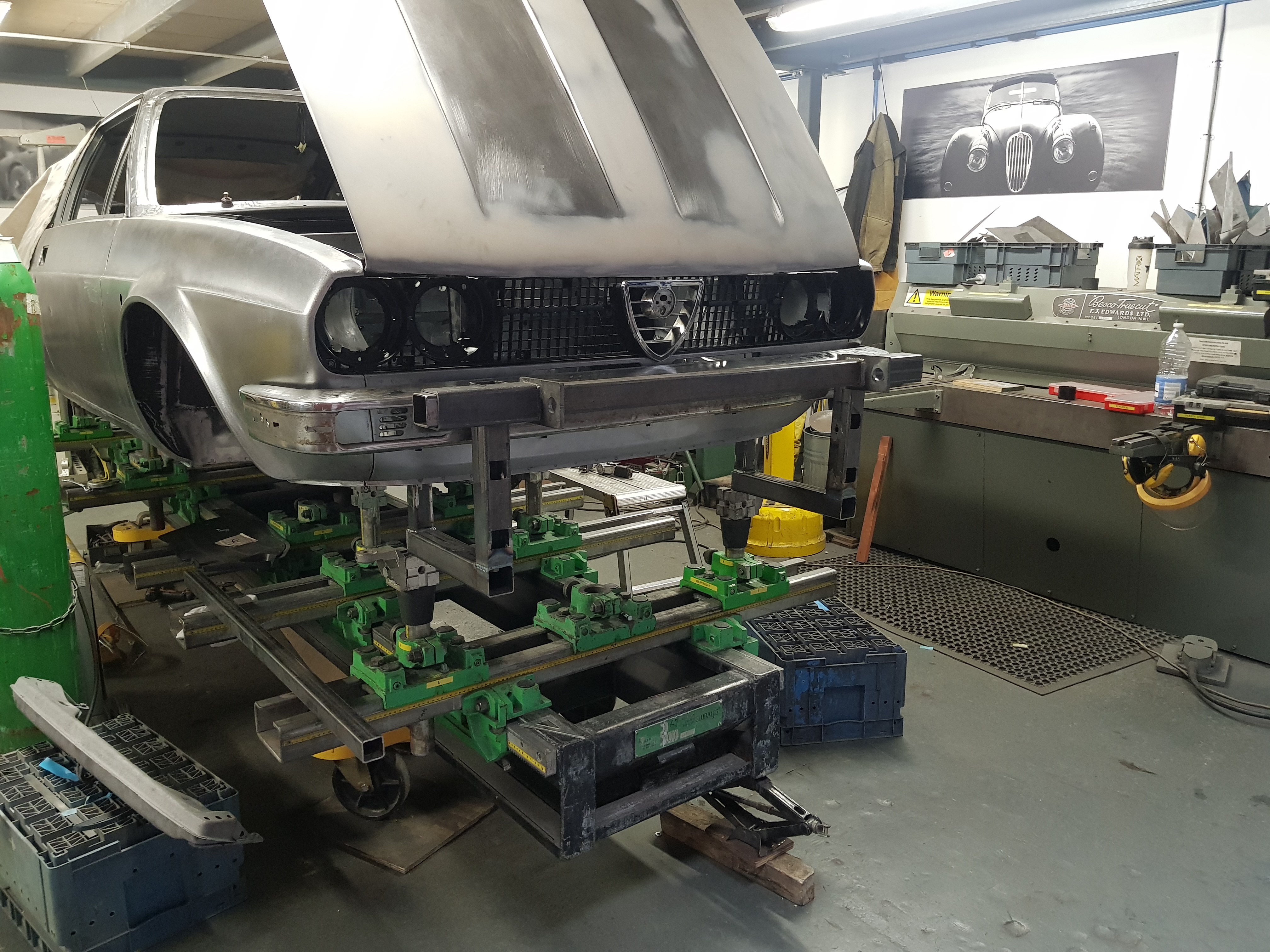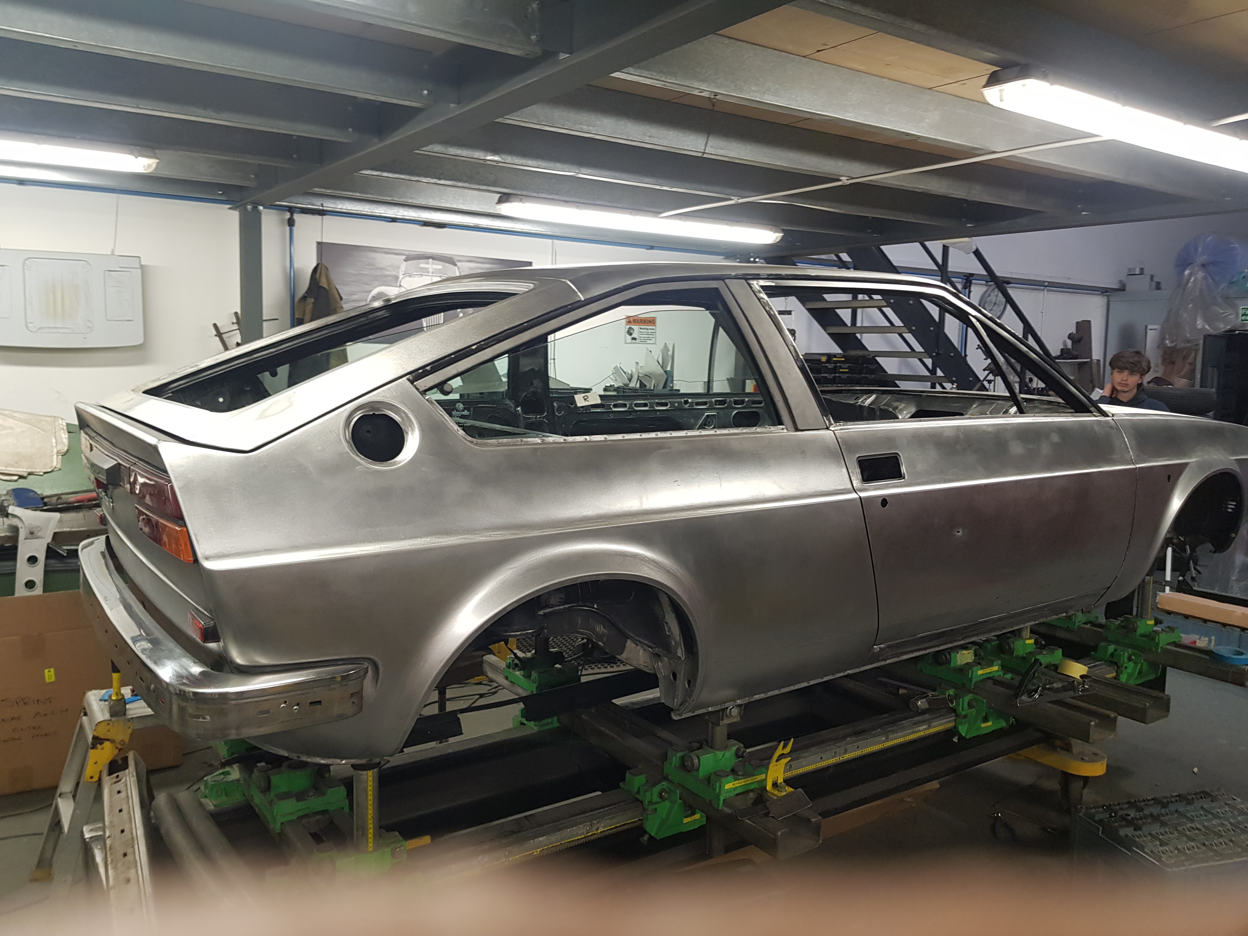 Some significant progress made, it now has a roof. Grille trial fit together with rear lights & badges. All glass & trim in process of being trial fitted. Interior trim to trial fit so that all self tapping screws can be replaced with machine screws into Rivnuts. Independent inspection is being carried out by one of the team who wasn't so closely involved with the main fabrication work. So far the bonnet hinges have been snagged as worn and the nearside rear quarter doesn't have a pressed in "landing" for the tailgate stop like the offside does. It will have..... The tailgate has lost strength, thought to be the dipping process disbonding the skins around the screen aperture. Will be clamped and spot welded. I have included a couple of interior shots, even the inside gets rubbed down & filled. As previous, pics appear right way up when clicked.